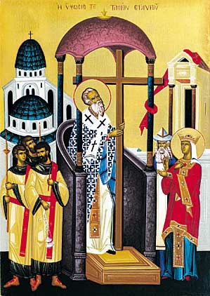 Drevo svätého Kríža, na ktorom zomrel Náš Pán Ježiš Kristus, našla podľa prastarej kresťanskej tradície sv. Helena (+ 330), matka cisára Konštantína Veľkého r. 326. Cisár Konštantín, ktorý vydaním Milánskeho ediktu legalizoval kresťanské náboženstvo, sa po prvom všeobecnom sneme v Nicei rozhodol, že dá postaviť kresťanský chrám-baziliku na jeruzalemskej Golgote, na mieste Kristovho utrpenia. Roku 326 prišla do Jeruzalema sv. Helena a na jej príkaz bol zbúraný Venušin chrám, postavený na Golgote za cisára Hadriána. Po odkrytí Golgoty sa podarilo nájsť aj jamu s troma krížmi a nápisom, ktorý bol podľa evanjelistov umiestený na Kristovom kríži. Keďže sa nedalo určiť, ktorý z troch krížov patril Ježišovi, jeruzalemský patriarcha Makarios prikázal, aby nájdené ostatky troch krížov priložili postupne k telu istej chorej ženy. Po priložení Kristovho kríža chorá žena ozdravela, a to bol dôkaz, že práve na tomto kríži zomrel Kristus. Patriarcha Makarios potom šiel aj s krížom na Golgotu, kde bolo drevo kríža vyzdvihnuté k verejnej úcte.