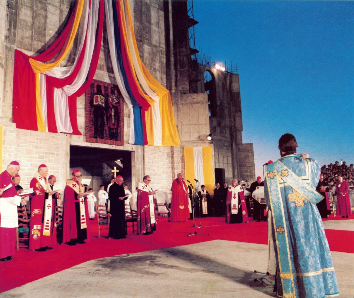 Nasledoval uvítací príhovor vladyku Rusnáka CSsR, v ktorom popísal situáciu gréckokatolíkov, ako prenasledovanej cirkvi: „…Naši predkovia a prenasledovaní bratia na Slovensku sú dnes oslávení vašou prítomnosťou. Napriek prenasledovaniu sme ostali verní stolcu sv. Petra. Na Slovensku sú obnovené snahy oddeliť gréckokatolíkov od vás. Avšak táto prvá slovenská katedrála v novom svete, posvätená Vašou Svätosťou bude žiarivým majákom náboženskej solidárnosti s našimi bratmi za morom. Hovorím za všetkých gréckokatolíckych Slovákov a ubezpečujem Vás, že sme s Vami a zostaneme s vami… Osobitný význam mala aj účasť všetkých slovenských biskupov vtedajšej doby v slobodnom svete na posviacke. Prítomnými boli arcibiskup Jozef Tomko, biskupi Kaľata. Hrušovský, Grutka i Hnilica. Oproti tomuto celkom sľubnému počtu boli v tom čase na Slovensku žijúci len traja katolícki biskupi (Gábriš, Pasztor, Feranec).