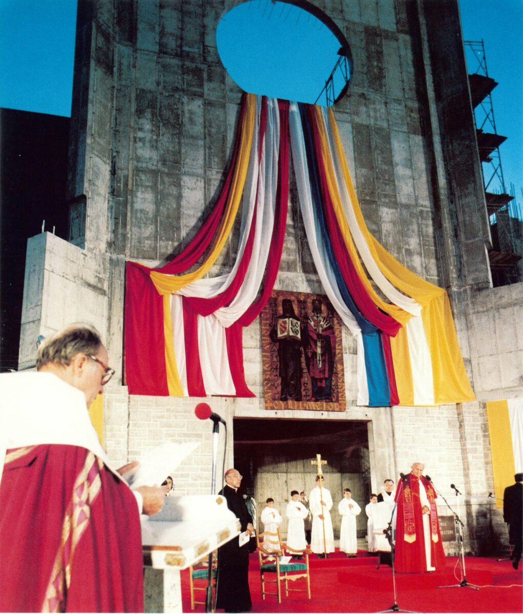 Večer pre začiatkom sa usporiadatelia potešili z dažďa, ktorý umyl červený koberec, ktorý sa rozprestieral až ku miestu, kde z limuzíny vystúpi Svätý Otec. Začiatok toho pamätného dňa, 15. septembra 1984 sa začínal s veľmi škaredým počasím, ale poludňajšie slnko vyjasnilo oblohu pre nádherný večer. Na vrchole hlavnej veže rozostavanej katedrály viali tri zástavy – pápežská, kanadská a slovenská. Slávobrána mala z čelnej strany nápis: „Svätý Otče, vitajte nám!“ a na opačnej „Svet sa v Kristu obnoví.“