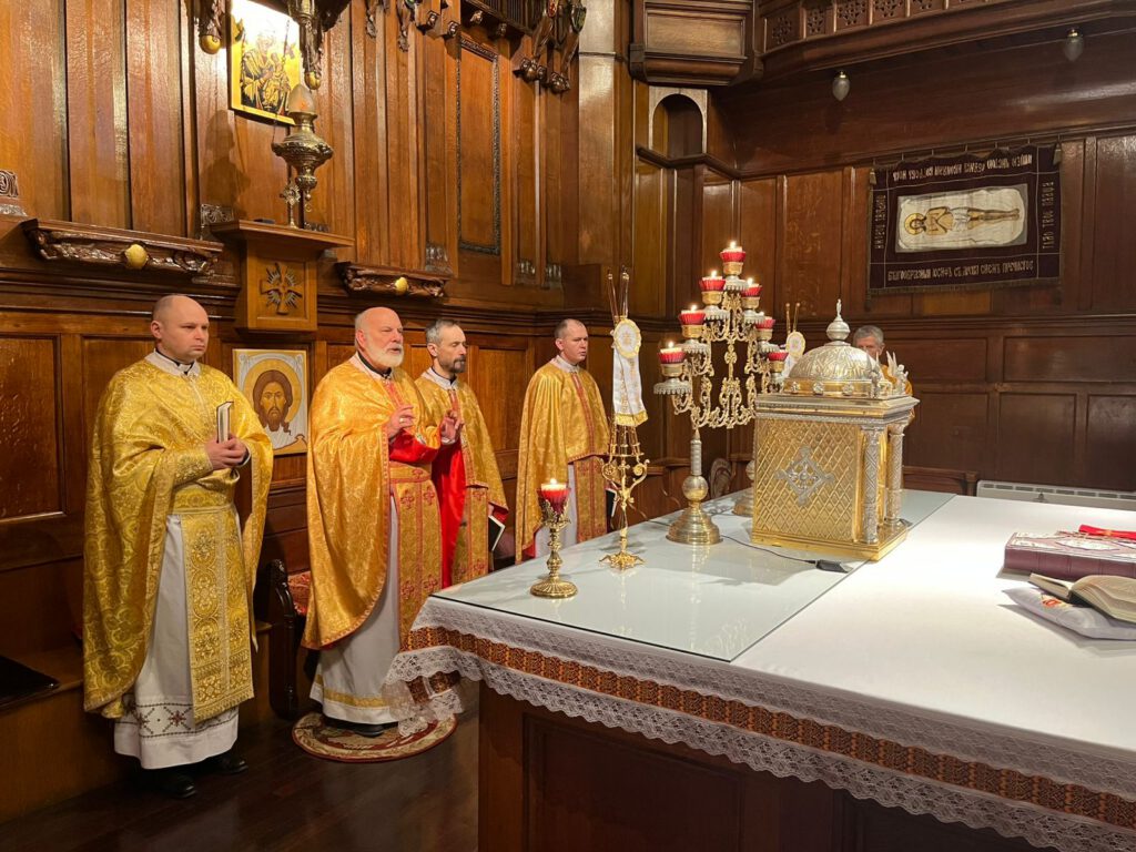 Vladyka Milan sa v Londýne stretol aj s vladykom Kennethom Nowakovskim, eparchiálnym biskupom tamojšej Ukrajinskej katolíckej eparchie Svätej rodiny so sídlom v Londýne. V sobotu ráno spolu s ním slávil archijerejskú liturgiu v miestnej Katedrále Svätej Rodiny.