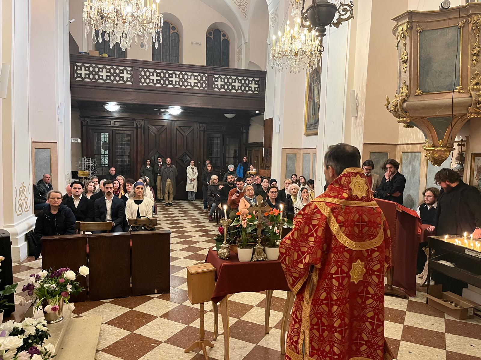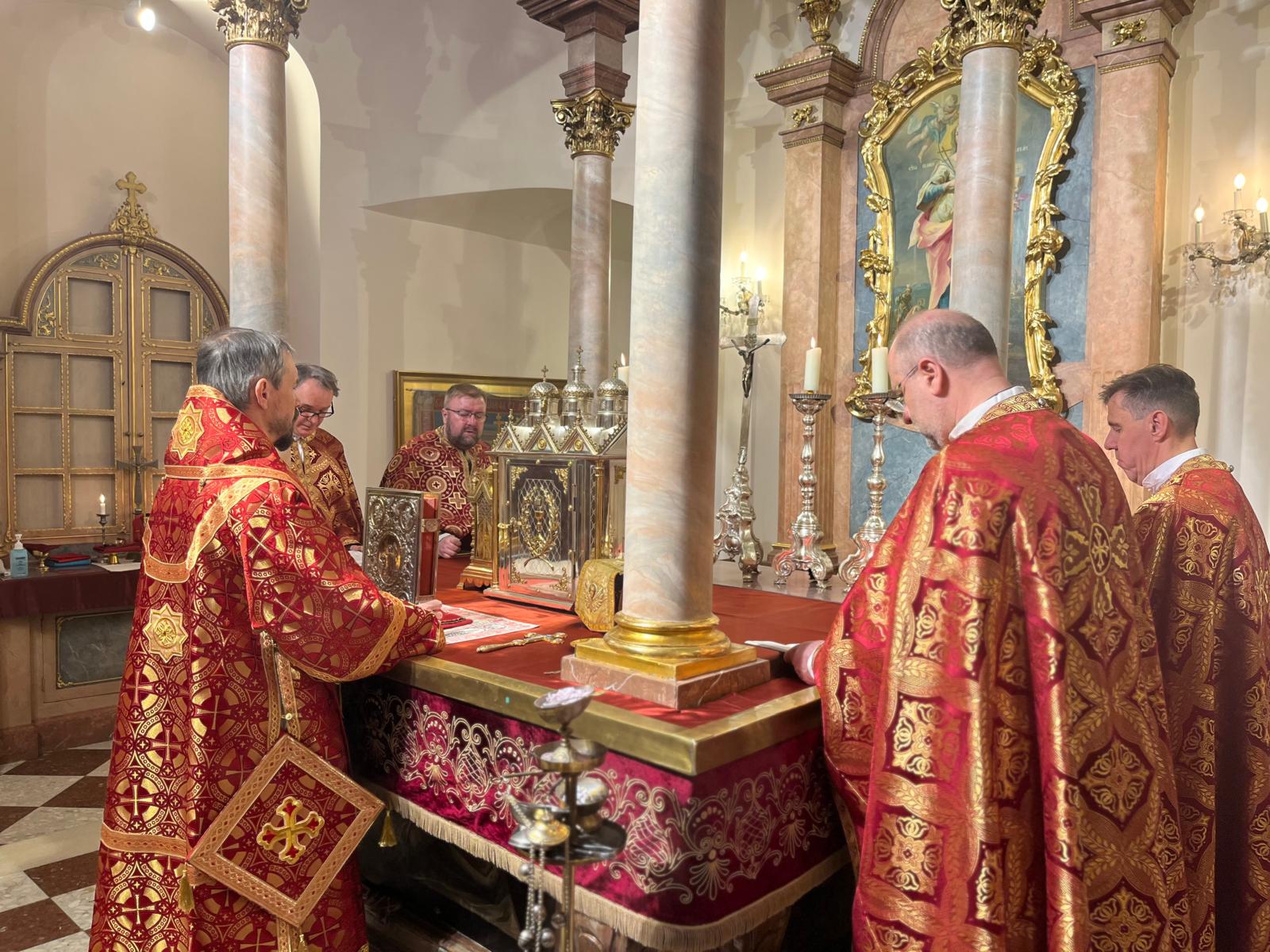 Vladyka Milan Lach zároveň navštívil Chrám sv. Barbory, kde o 18. hodine predsedal sláveniu Liturgie vopred posvätených darov. Pri tejto príležitosti navštívil aj rakúsku katolícku tlačovú agentúru Kathpress a poskytol rozhovor.