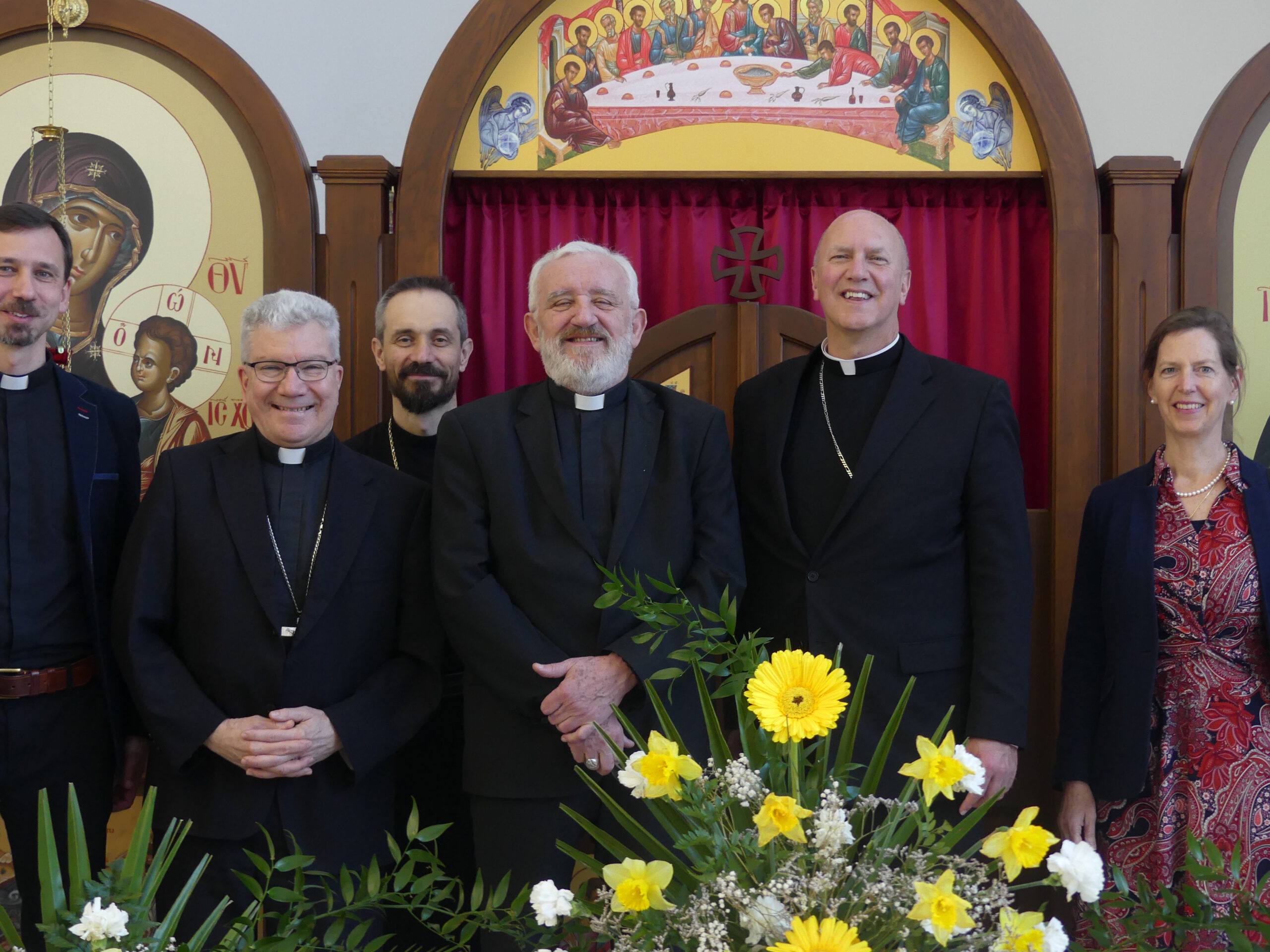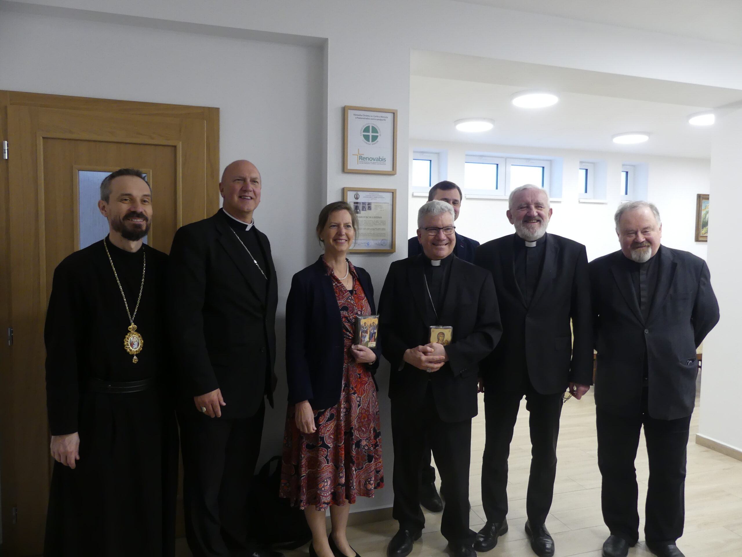 Bratislava 21. apríl (EPBA) – Vladyka Peter Rusnák spolu s pomocným biskupom Milanom Lachom sa vo štvrtok 20. apríla 2023 stretli s delegáciou Konferencie katolíckych biskupov Spojených štátov amerických, ktorí v týchto dňoch absolvujú niekoľkodňovú návštevu Slovenska. Delegáciu vedie predseda Subkomisie USCCB na pomoc Cirkvi v strednej a východnej Európe Mons. Jeffrey M. Monforton – biskup diecézy Steubenville (juhovýchodné Ohio), ktorého sprevádza biskup Gerald L. Vincke z Diecézy Salina (zo severného Kansasu), ako aj riaditeľka sekretariátu Subkomisie Jennifer Healy.