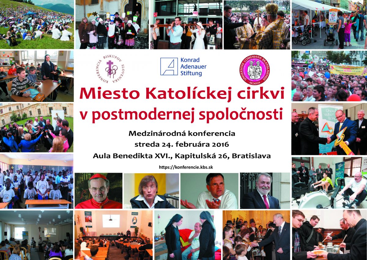plagat Konferencia 240216.inddTaliansky kardinál a emeritný arcibiskup Bologne Carlo Caffarra navštívi v najbližších dňoch Bratislavu. Na pozvanie Konferencie biskupov Slovenska vystúpi ako hlavný rečník na medzinárodnej konferencii pod názvom „Miesto Katolíckej cirkvi v postmodernej spoločnosti“ v stredu 24. februára v aule Benedikta XVI. (CMBF UK) v Bratislave. Témou kardinálovej prednášky bude: Cirkev a človek ktorý žije túžbami bez nádeje.