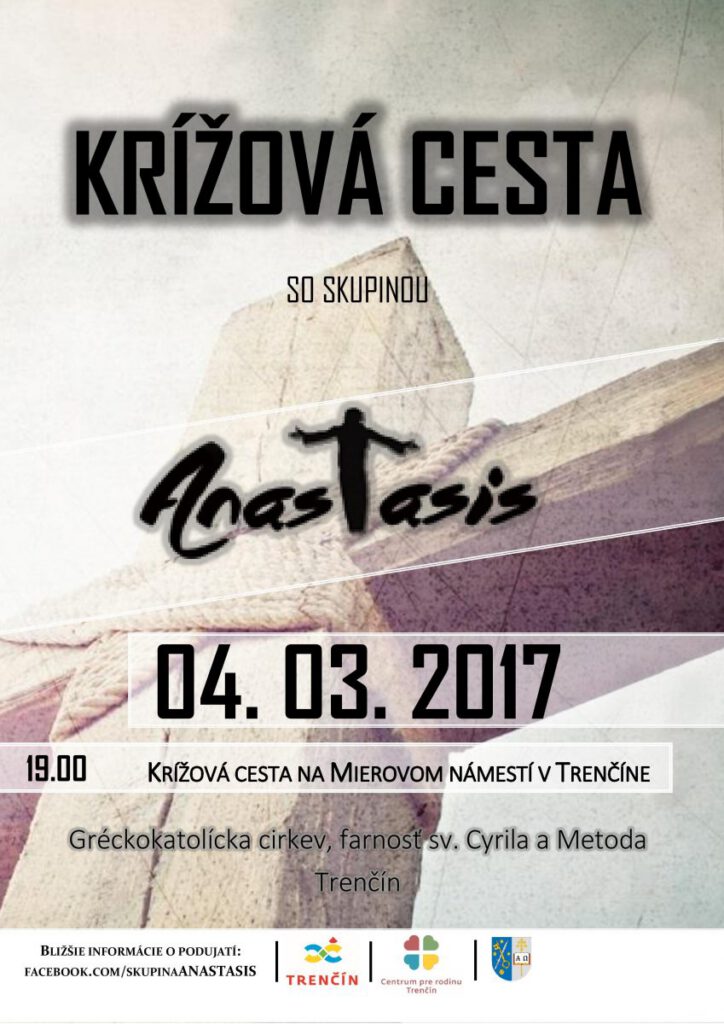 Gréckokatolícka farnosť Trenčín pozýva na Krížovú cestu so skupinou Anastazis, ktorá sa bude konať na Prvú pôstnu sobotu – 4. marca 2017 o 19:00 hod.