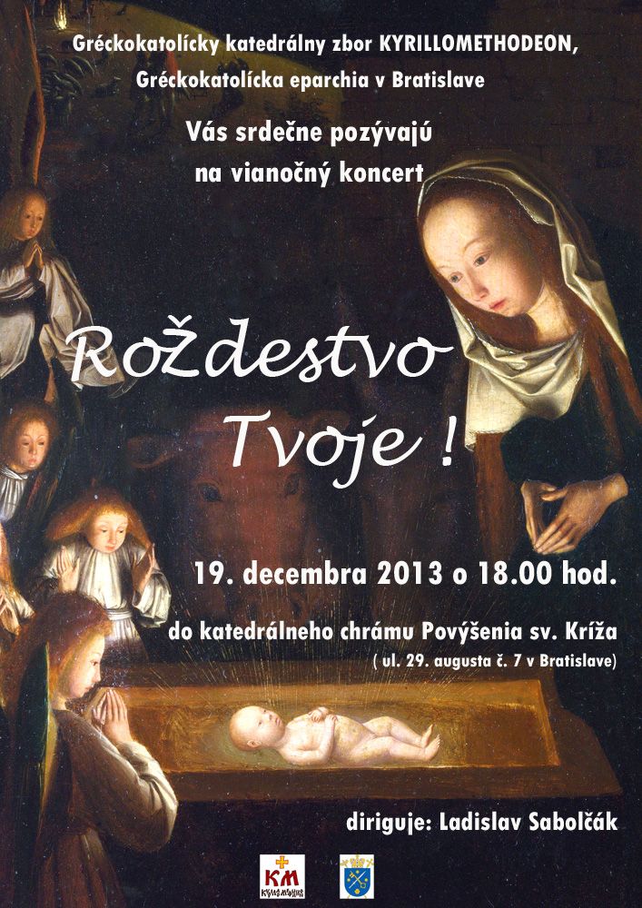 Bratislavská eparchia, Gréckokatolícka farnosť Bratislava-Staré Mesto a Katedrálny zbor Kyrilloomethodeon Vás srdečne pozývajú na vianočný koncert pod názvom Roždestvo tvoje, pri príležitosti ukončenia Roku viery