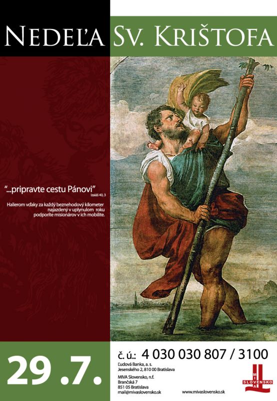 MIVA Slovensko n. f. v spolupráci s Gréckokatolíckou farnosťou bl. hieromučeníka Vasiľa Hopku v Bratislave-Petržalke pozýva na podujatie Krištofova nedeľa, ktoré sa uskutoční v nedeľu