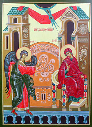 Tropár, 4. hlasDnes je začiatok našej spásy. Dnes sa uskutočňuje večné tajomstvo: Syn Boží sa stáva Synom Panny. Gabriel zvestuje milosť Božiu. Preto aj my