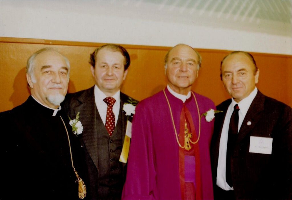 (R. 1981) Intronizácia biskupa Rusnáka za sídelného biskupa Eparchie sv. Cyrila a Metoda v Toronte, Kanada. Na fotke: Vladyka Izidor Borecký, ukrajinský biskup Toronta, pán