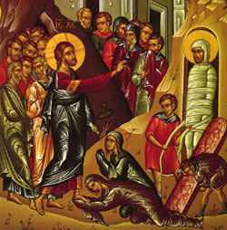 Tropár, 1. hlas: Už pred svojím utrpením, Kriste Bože, dokázal si pravdivosť viery vo všeobecné zmŕtvychvstanie, lebo si vzkriesil Lazára. Preto aj my spolu s