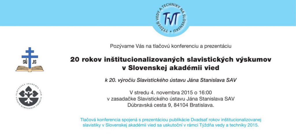 Slavistický ústav Jána Stanislav Slovenskej Akadémie vied si v týchto dňoch pripomína dvadsiate výročie svojho vzniku. Pri tejto príležitosti sa bude konať trojdňový Slavistický kongres