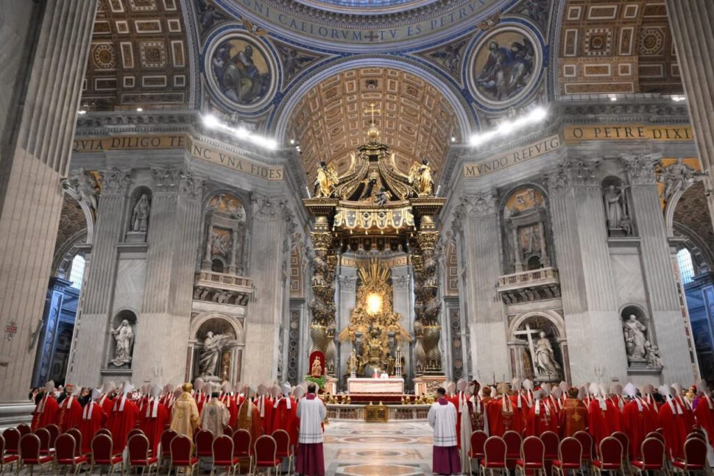 Bazilika svätého Petra, piatok, 2. mája 2025 V siedmy deň Novendiales, v piatok 2. mája 2025 sa na slávení svätej omše za zosnulého pápeža Františka v Bazilike