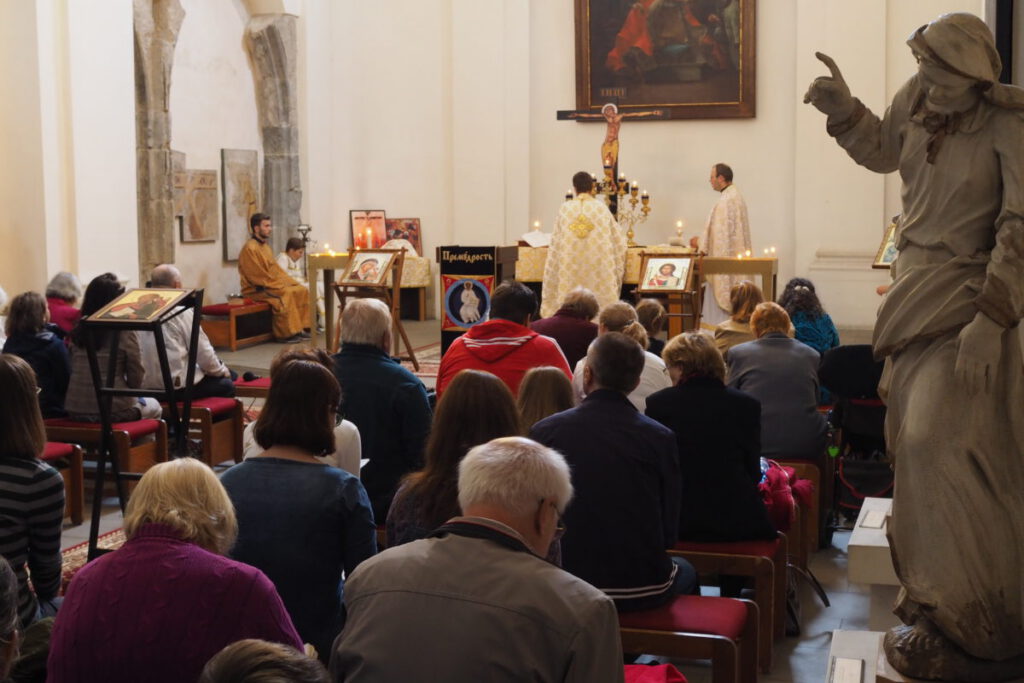 Približne stovka veriacich, medzi nimi mnoho mladých rodín s deťmi, sa zhromaždilo v nedeľu 23. septembra v kaplnke na Zvolenskom zámku, aby oslávili patróna gréckokatolíckej