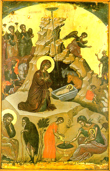 Pravý význam Vianoc pekne vystihuje ikona Narodenia Pána. V jej strede je Kristus, ktorý leží v obdĺžnikovej sťaby truhličke v čiernej jaskyni. Jaskyňa znázorňuje temnotu,