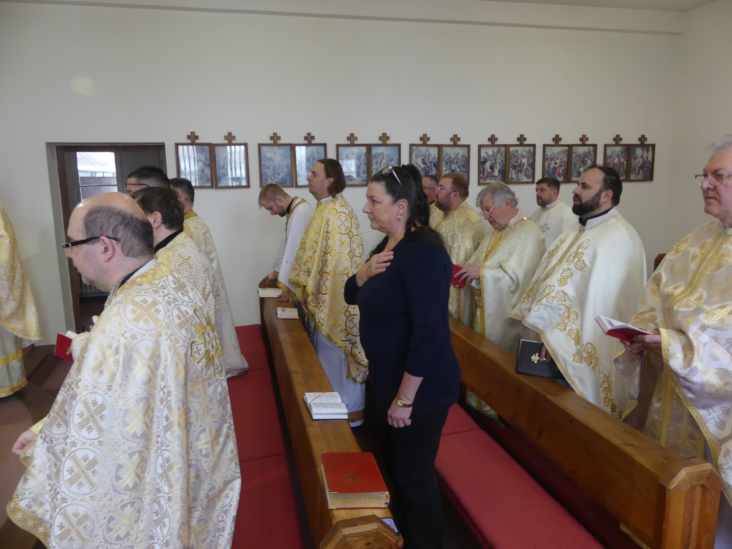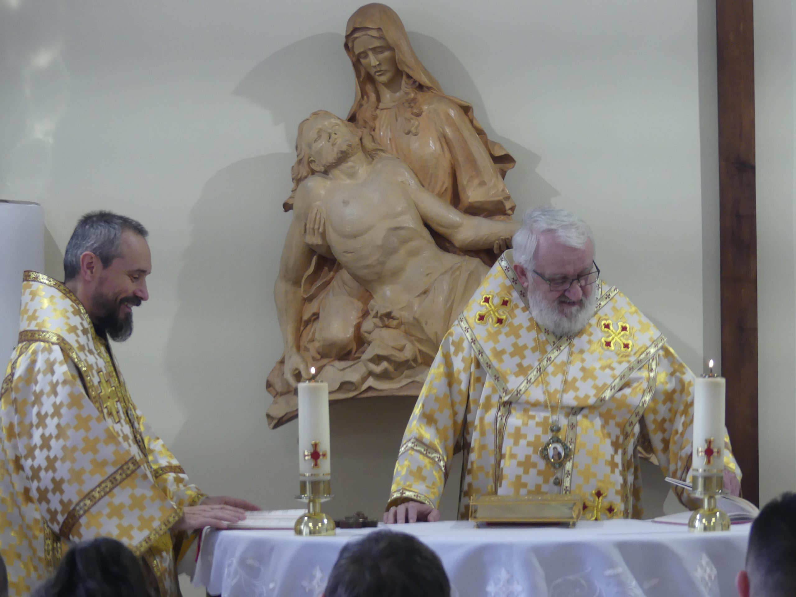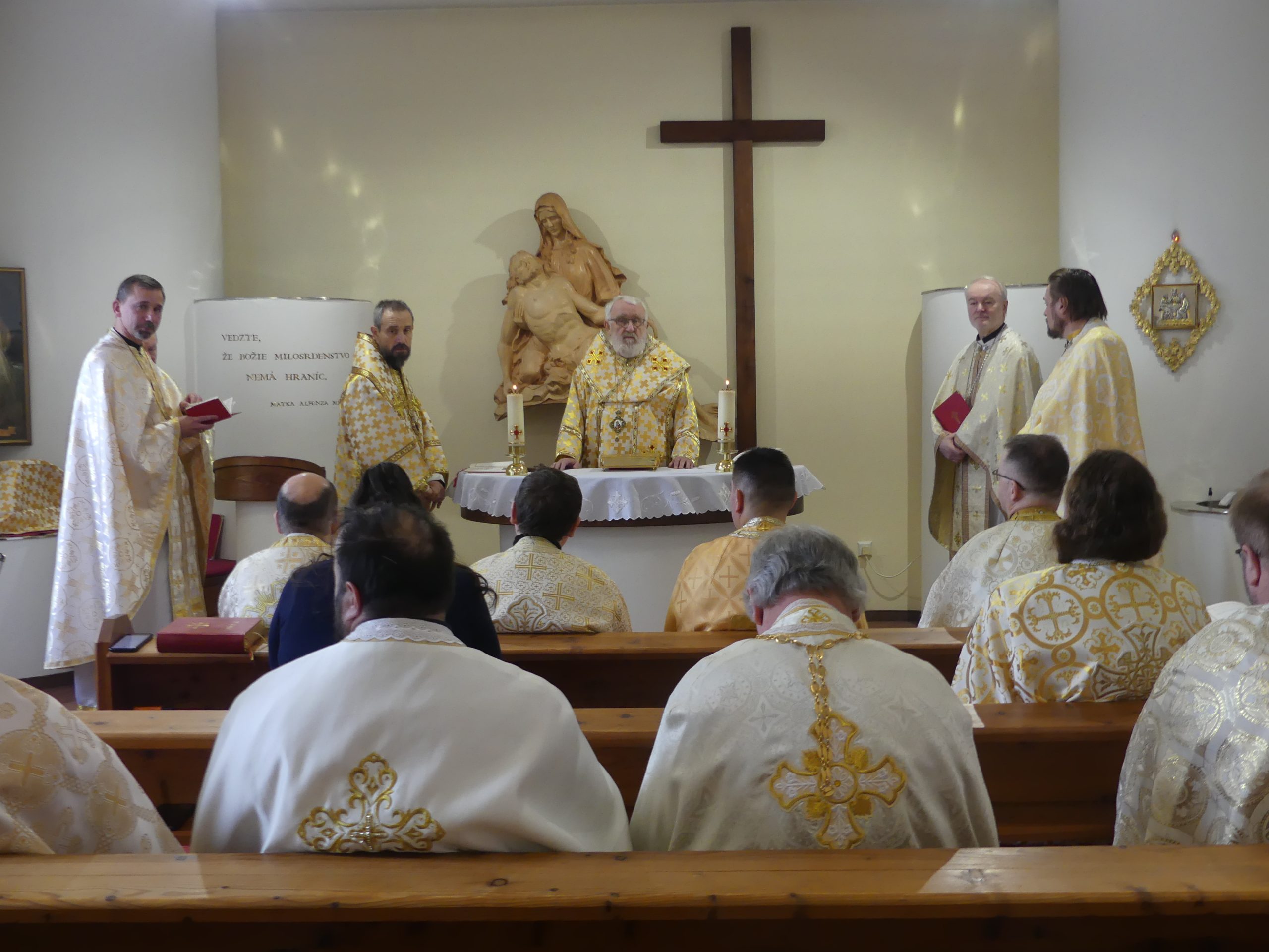 Dvojdňové stretnutie vyvrcholilo spoločným slávením božskej liturgie, ktorej predsedal vladyka Peter Rusnák. Vo svojej homílii pripomenul, že v týchto dňoch (30. januára) si budeme pripomínať 18. výročie povýšenia našej cirkvi na metropolitnú a tiež 18. výročie zriadenia eparchie. Toto Božie požehnanie pre našu Cirkev je podľa vladyku ovocím utrpenia nasej Cirkvi počas v minulosti. Kňazov povzbudil, aby svoje kresťanské svedectvo vydávali v každodennom živote, podľa príkladu sv. Jana Zlatoústeho, ktorého prenesenie relikvií si dnes naša Cirkev pripomína vo svojom liturgickom kalendári. V závere podujatia odznela pozvánka na slávenie eparchiálneho Dňa zasväteného života, ktorý sa bude konať 2. februára v Chráme sv. Cyrila a Metoda v Trenčíne.