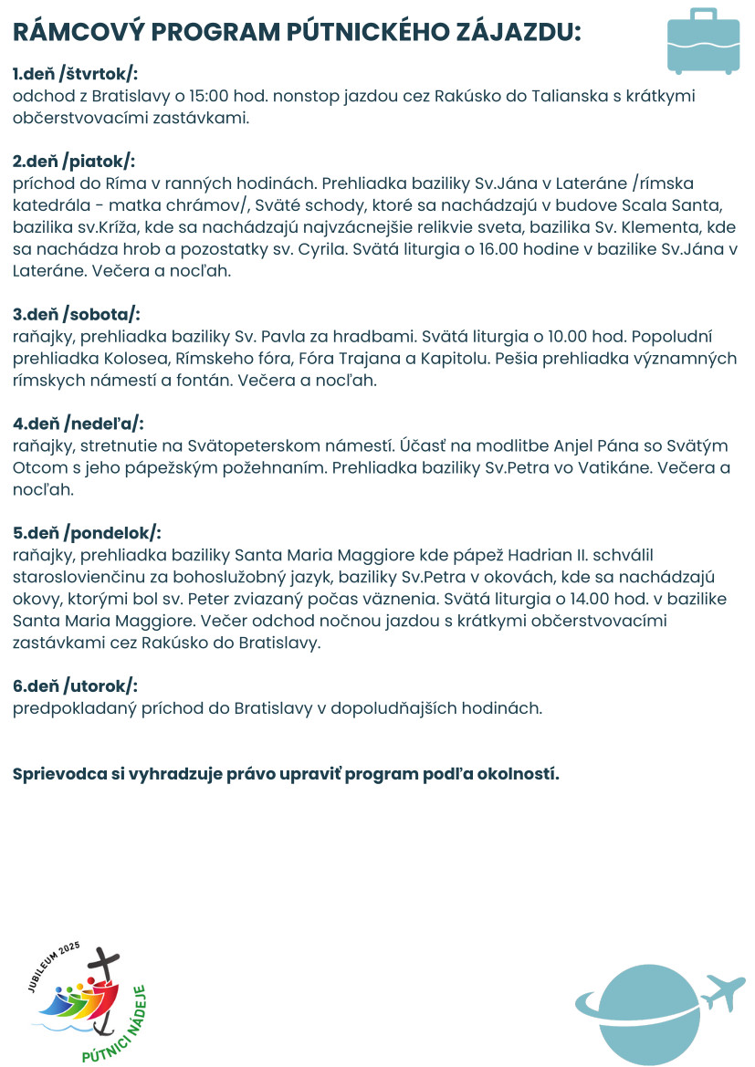 RÁMCOVÝ PROGRAM PÚTNICKÉHO ZÁJAZDU: