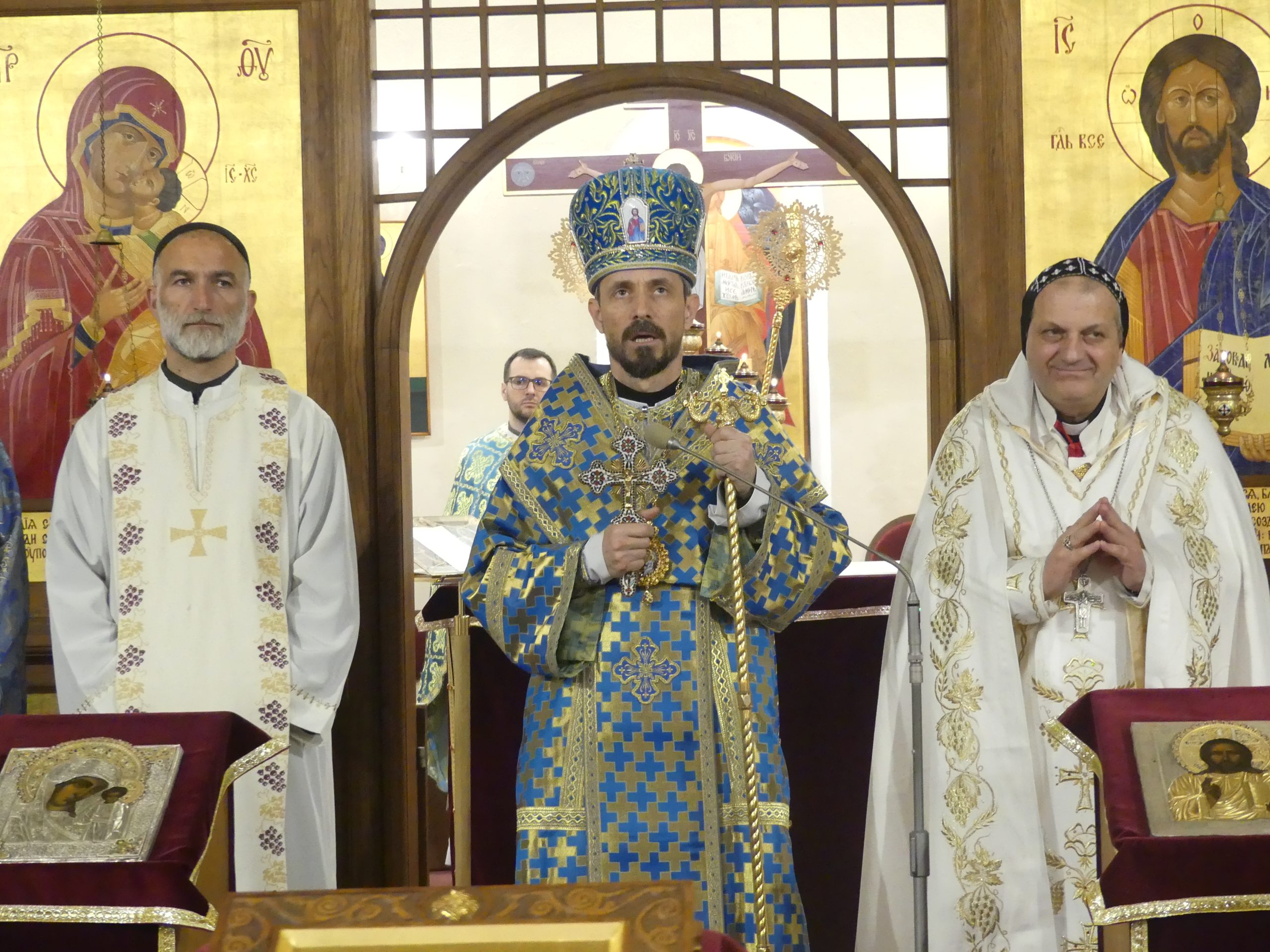 Slávenie sa skončilo spevom Mnoholitstvija a myrovaním, po ktorom nasledovala ešte beseda so sýrskymi hosťami v priestoroch Eparchiálneho úradu.