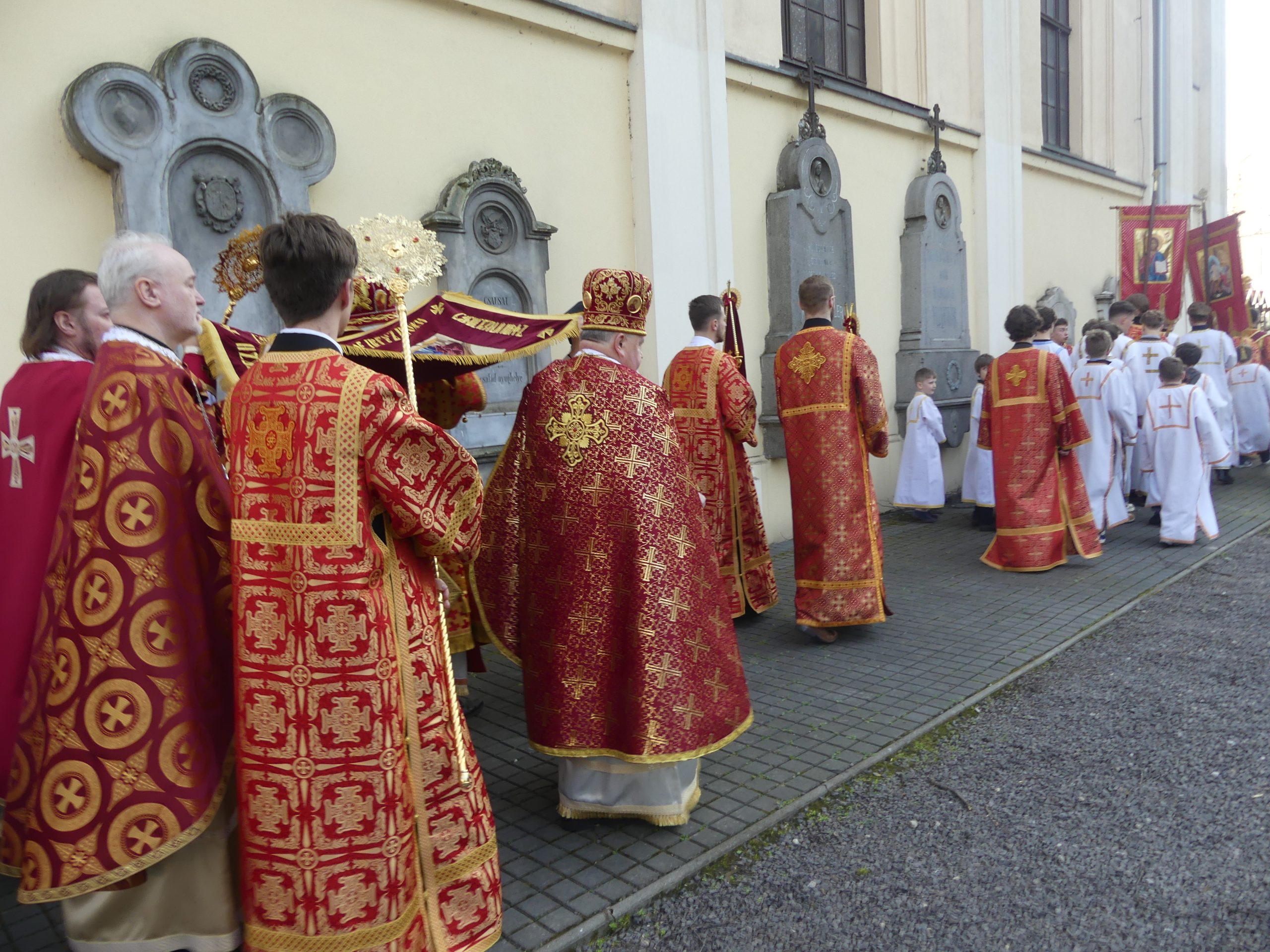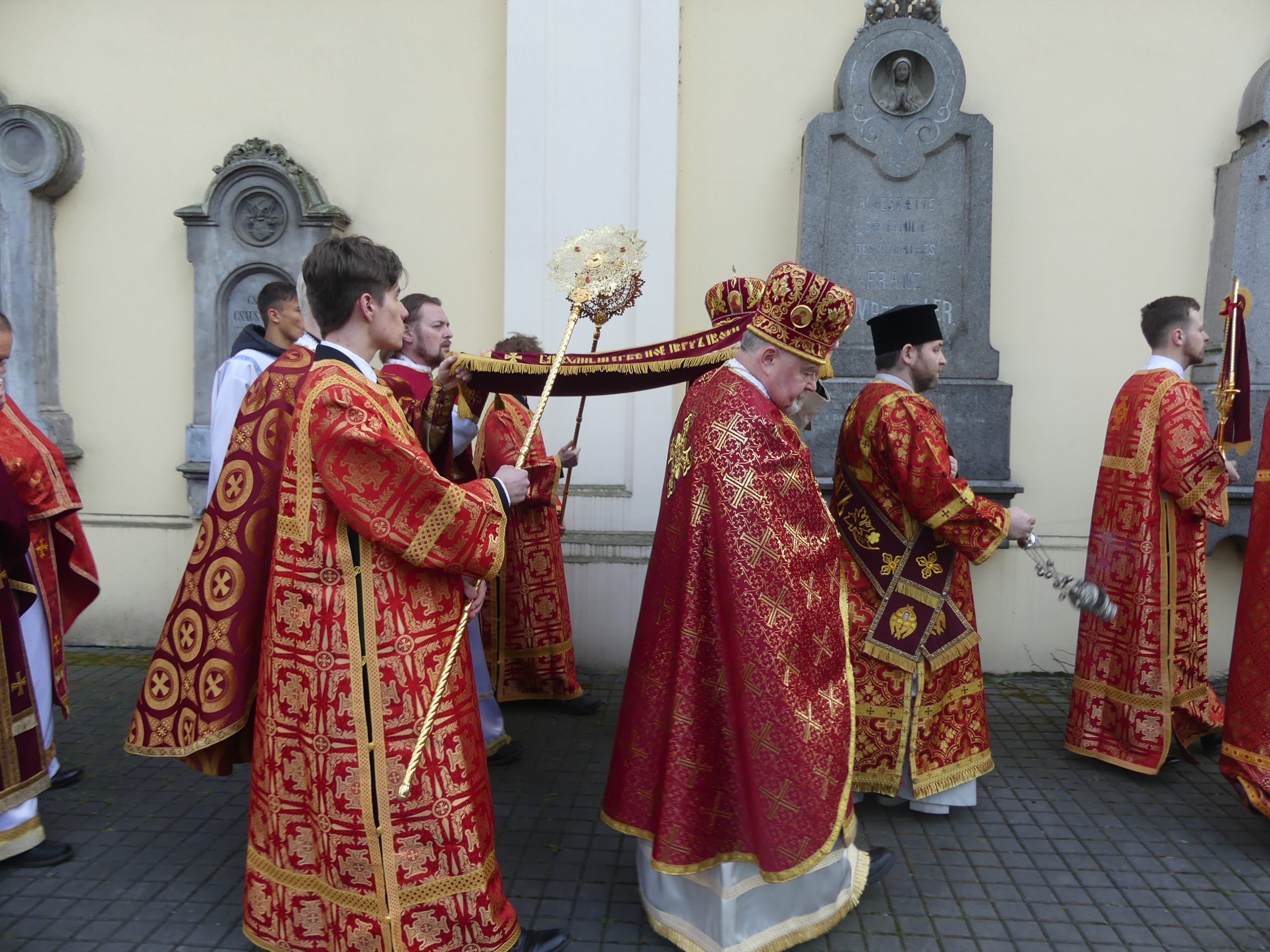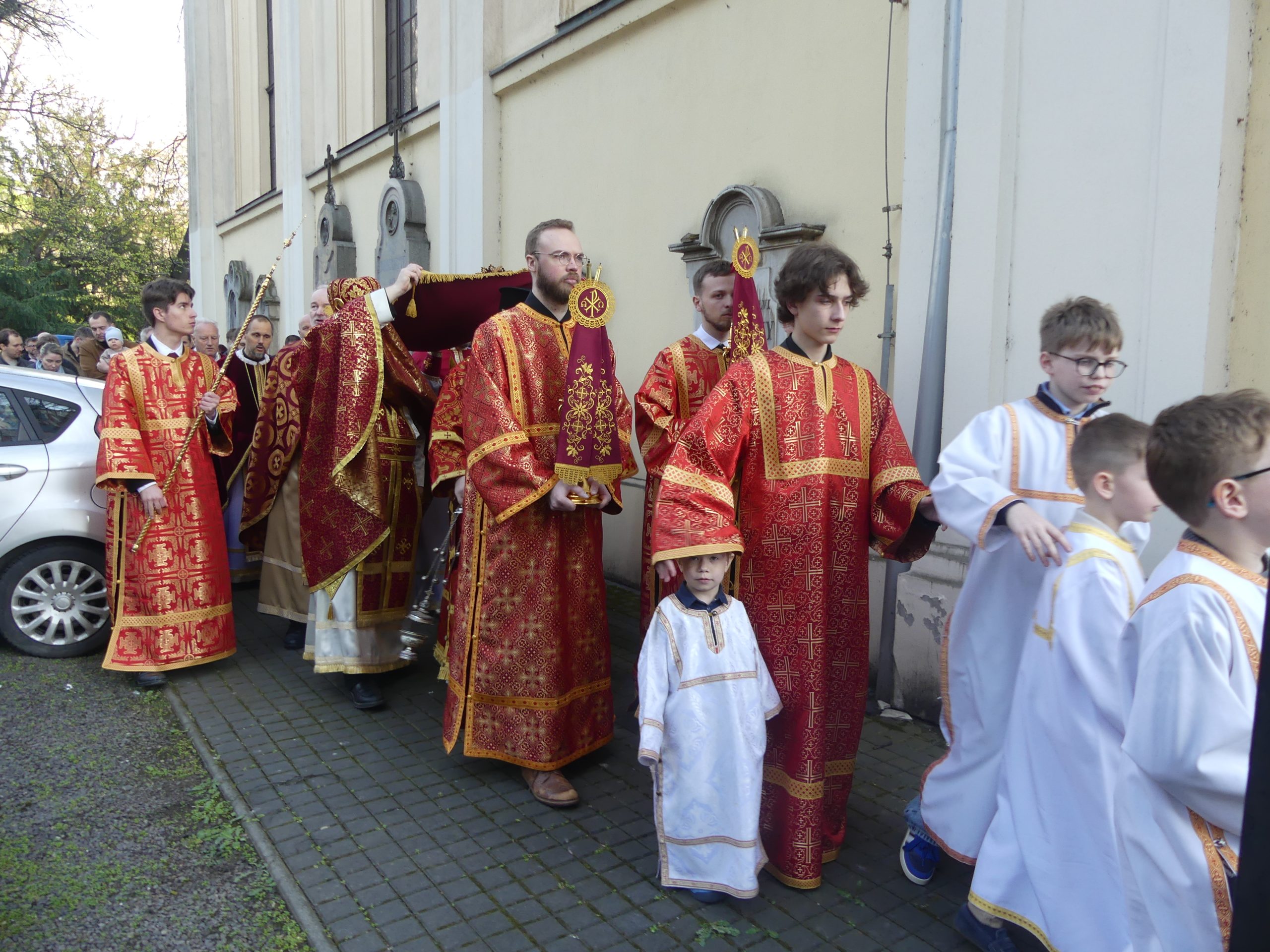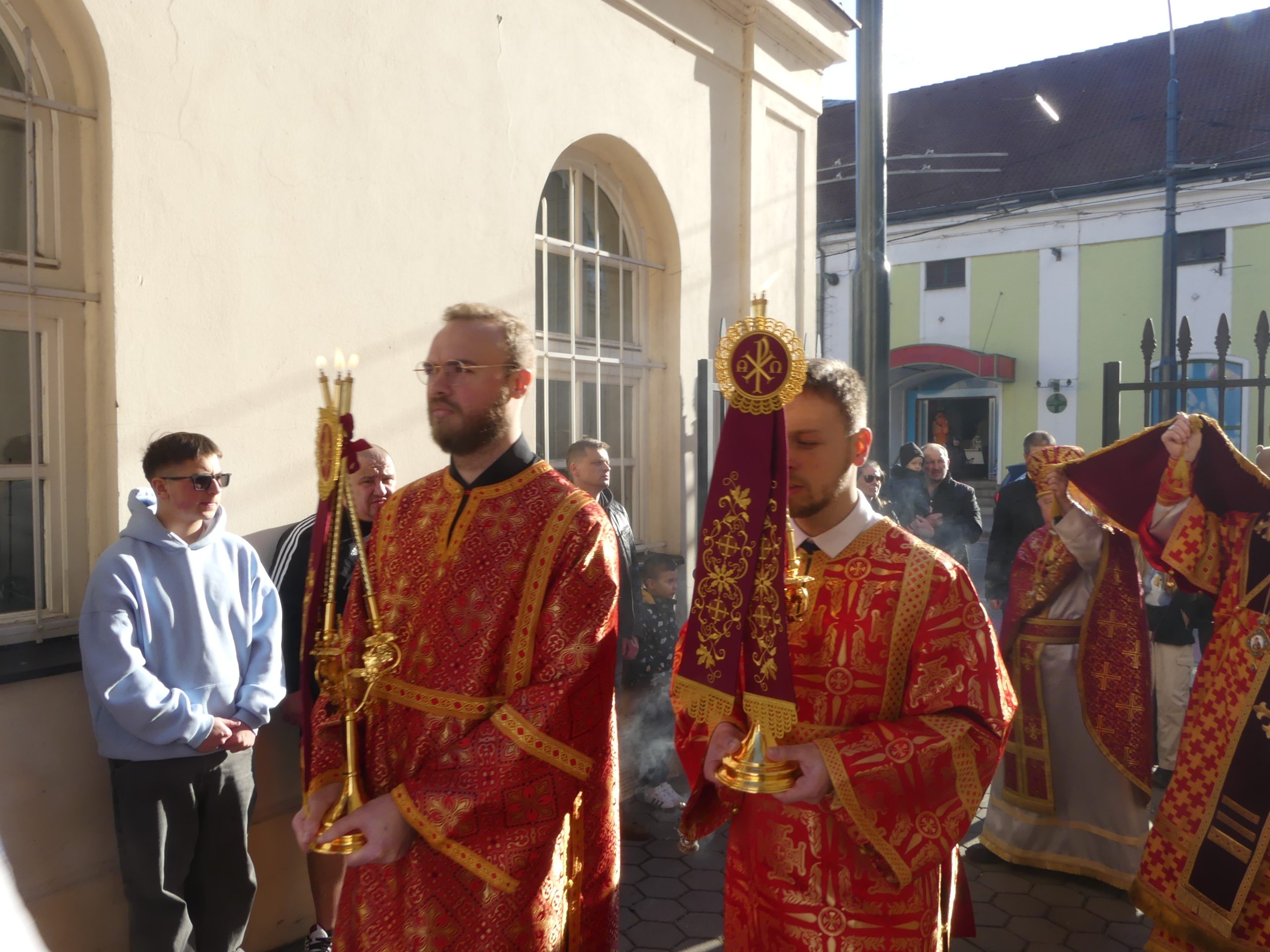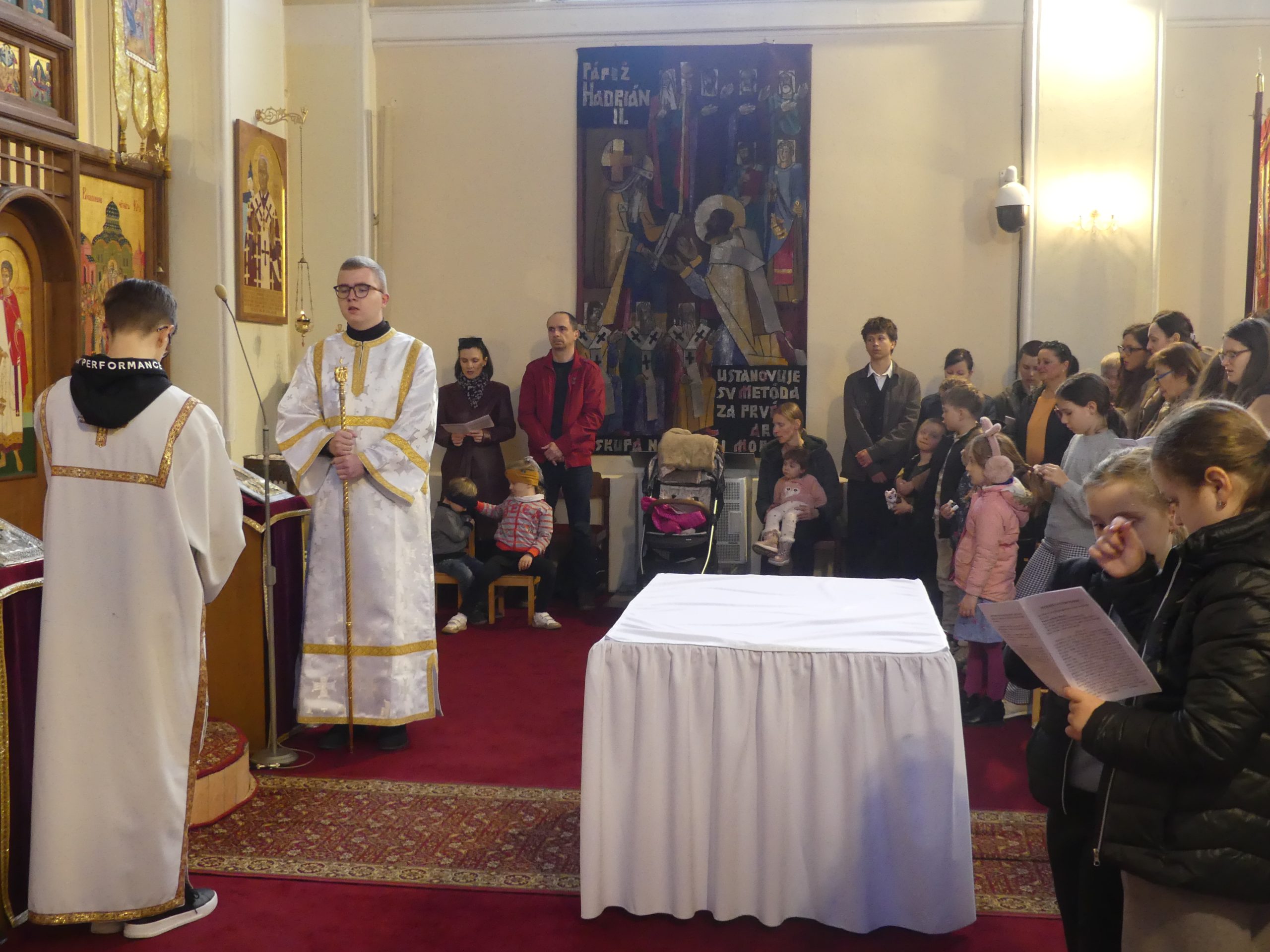 Poobede o 16.00 predsedal vladyka Peter obradom veľkopiatkovej večierne spojenej so sprievodom okolo chrámu s plaštenicou a jej následným uložením uprostred chrámu. Prítomní veriaci si potom poklonou a bozkom uctili plaštenicu, symbolizujúcu plachty, do ktorých bol Ježiš zabalený a uložený v hrobe.