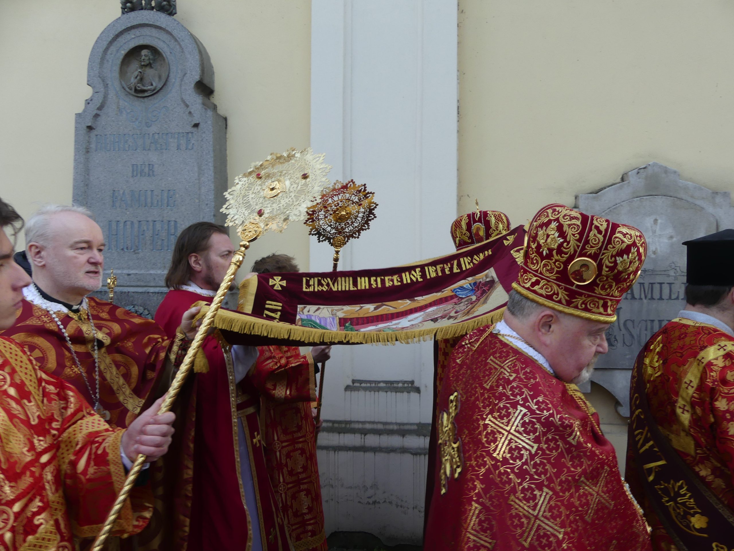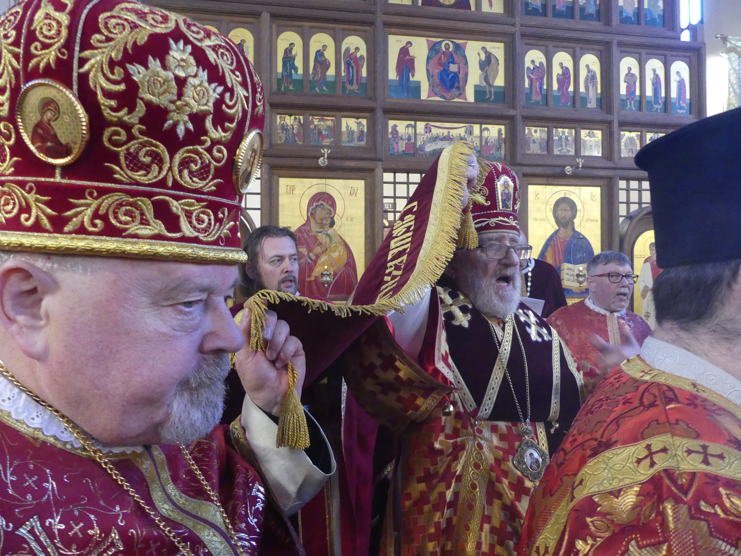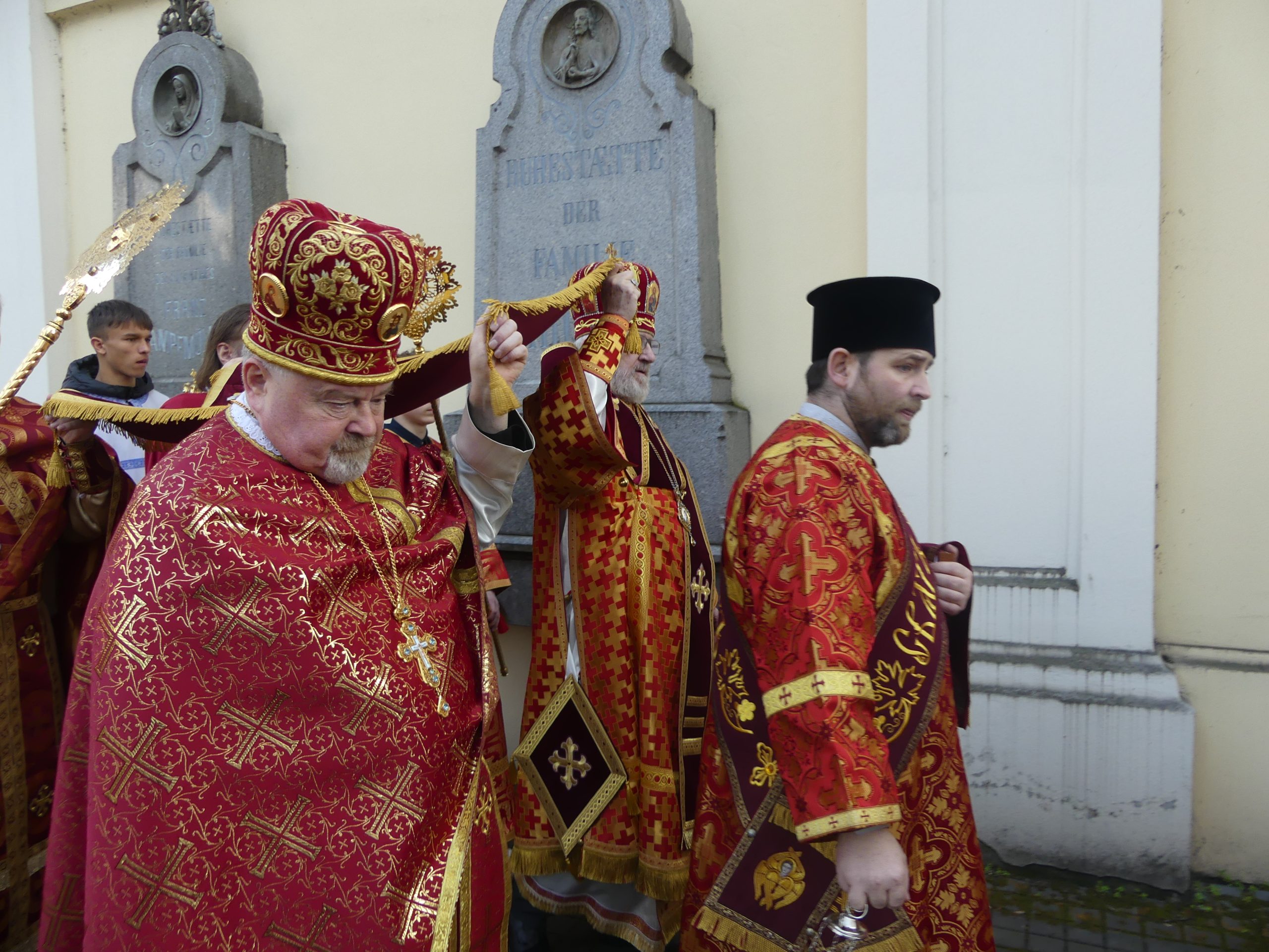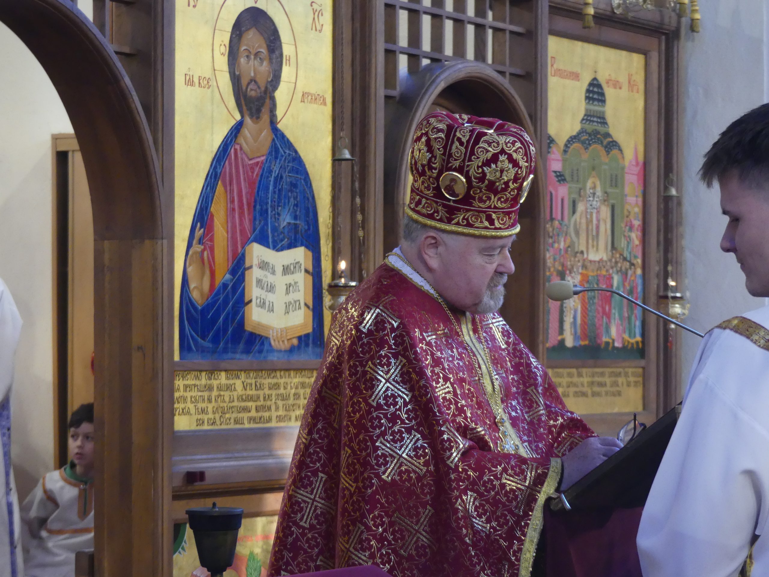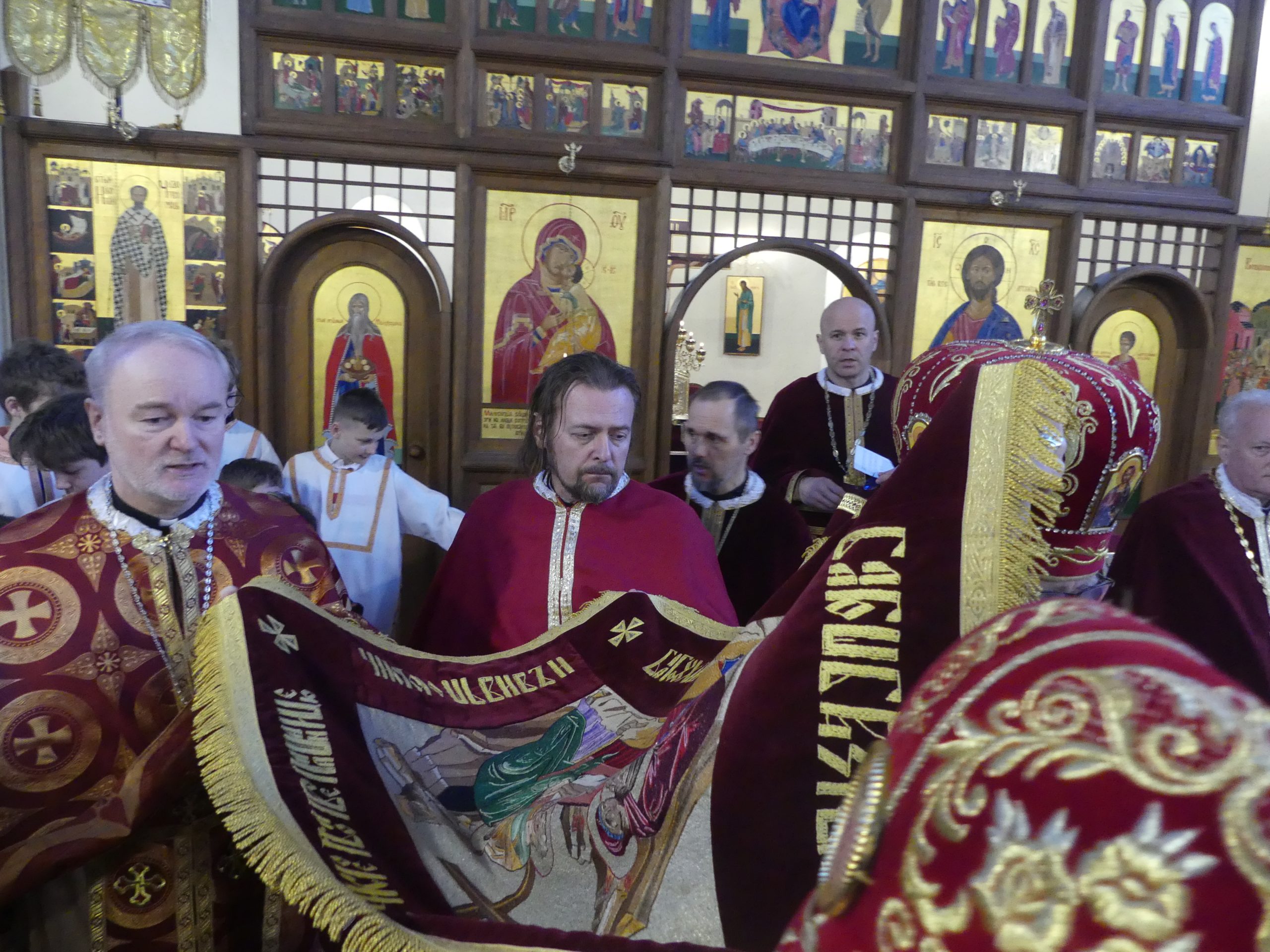 Poobede o 16.00 predsedal vladyka Peter obradom veľkopiatkovej večierne spojenej so sprievodom okolo chrámu s plaštenicou a jej následným uložením uprostred chrámu. Prítomní veriaci si potom poklonou a bozkom uctili plaštenicu, symbolizujúcu plachty, do ktorých bol Ježiš zabalený a uložený v hrobe.