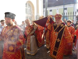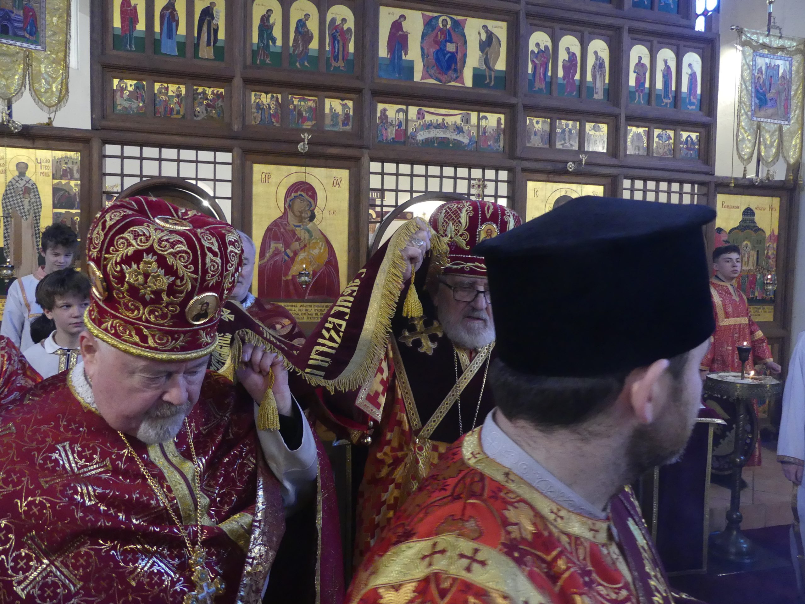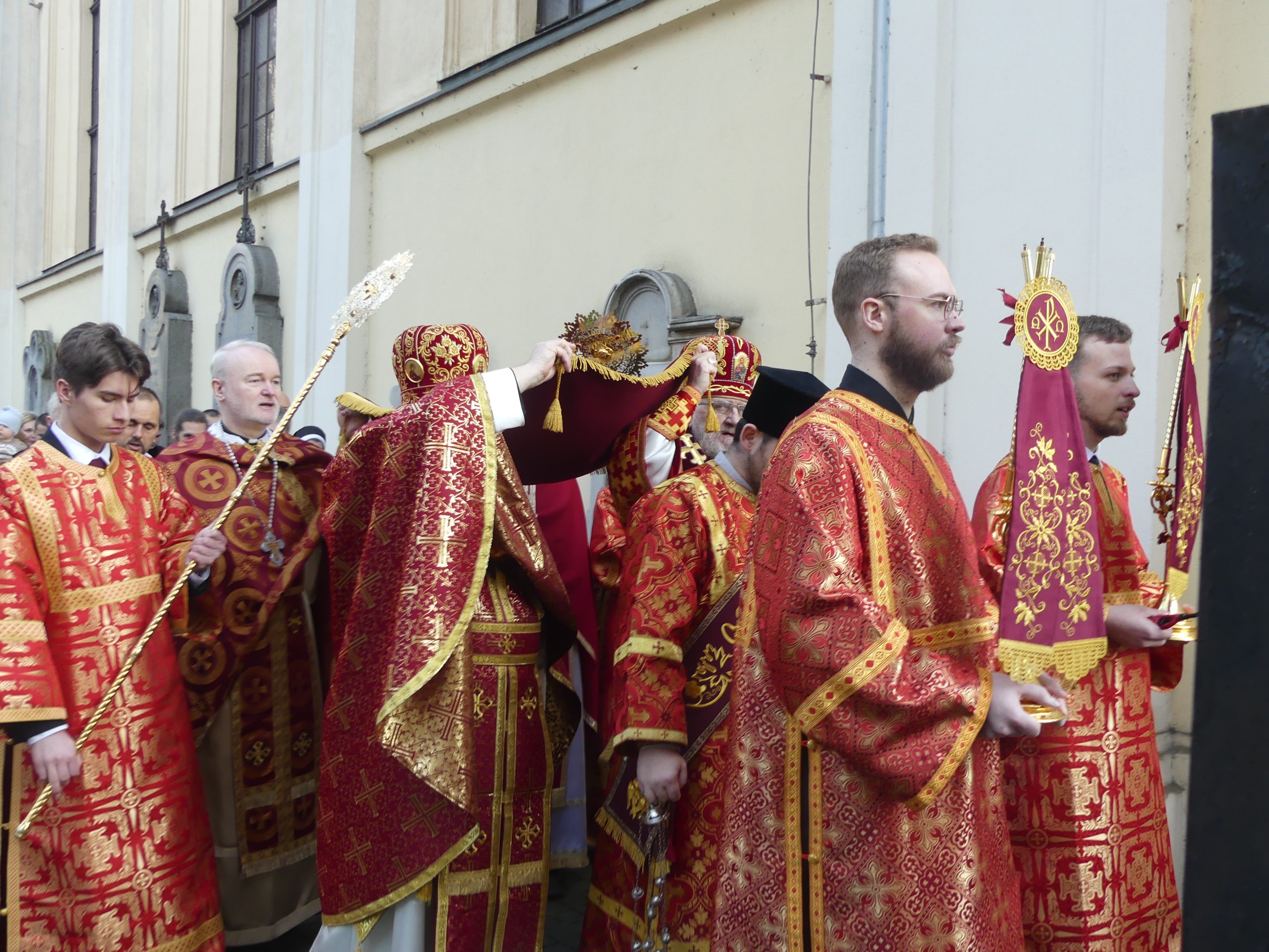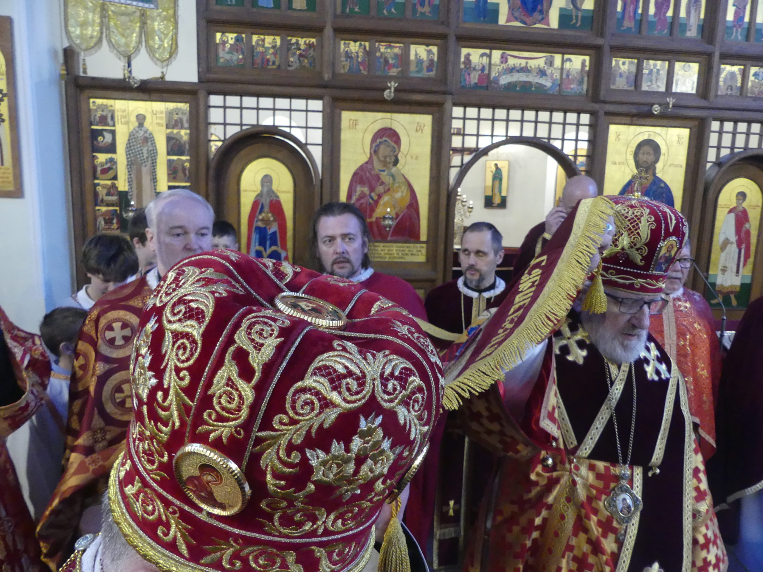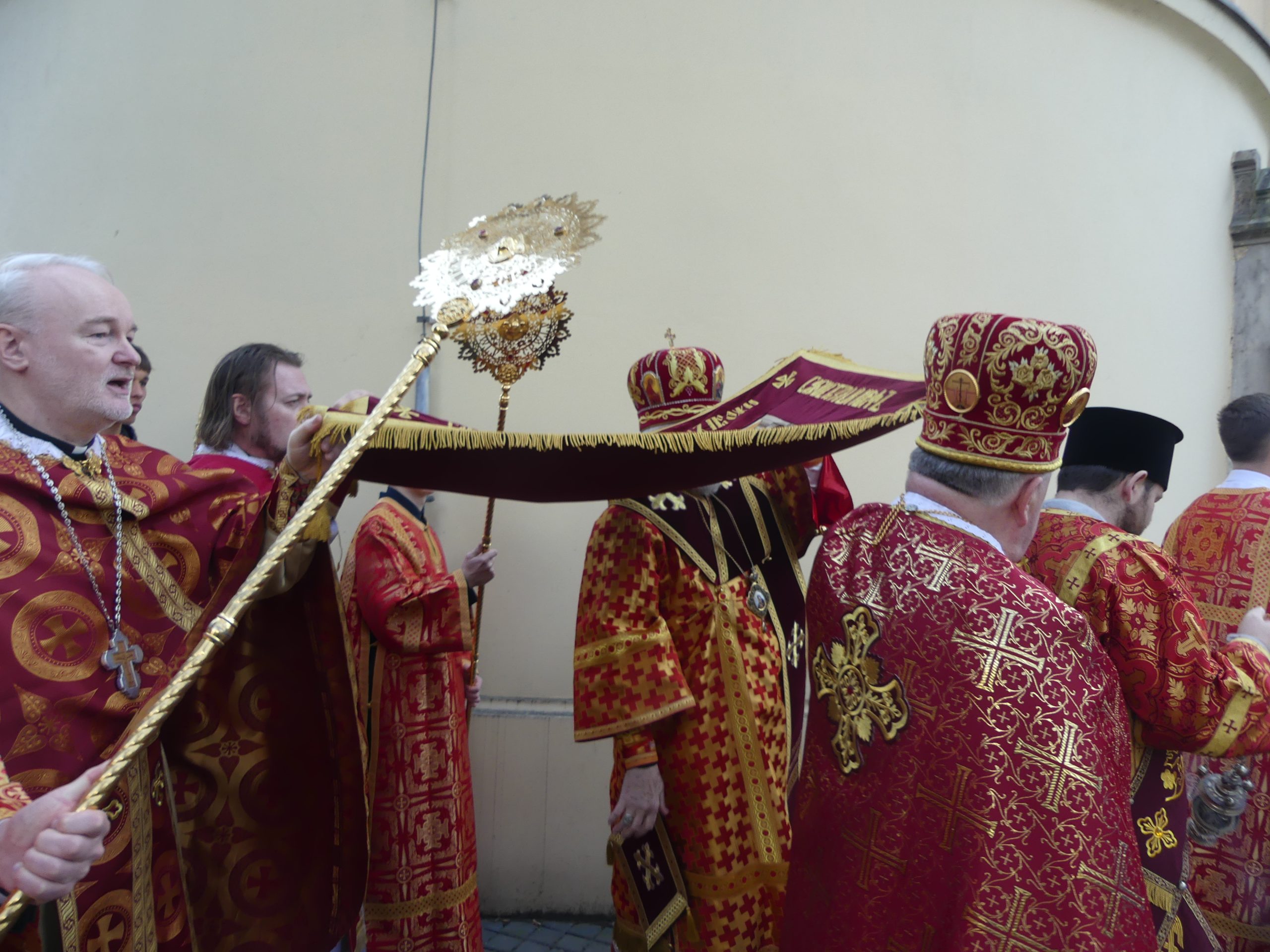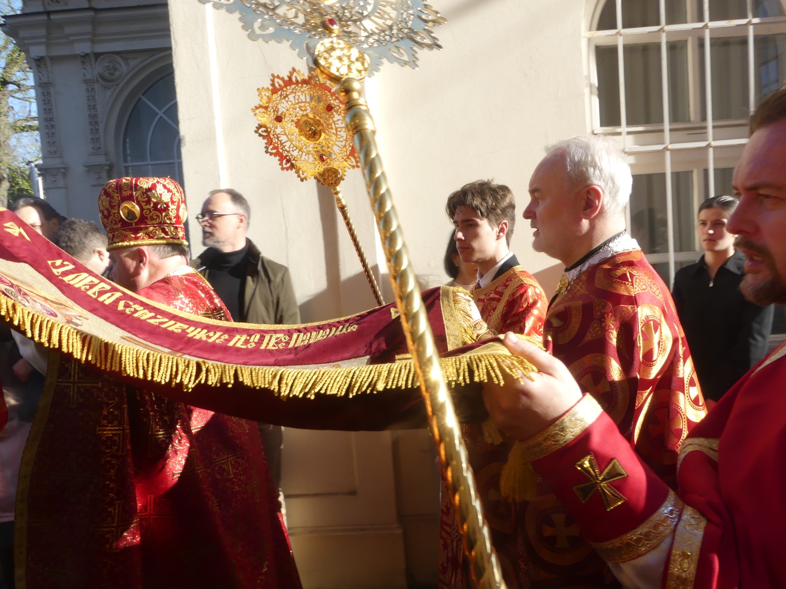 Poobede o 16.00 predsedal vladyka Peter obradom veľkopiatkovej večierne spojenej so sprievodom okolo chrámu s plaštenicou a jej následným uložením uprostred chrámu. Prítomní veriaci si potom poklonou a bozkom uctili plaštenicu, symbolizujúcu plachty, do ktorých bol Ježiš zabalený a uložený v hrobe.