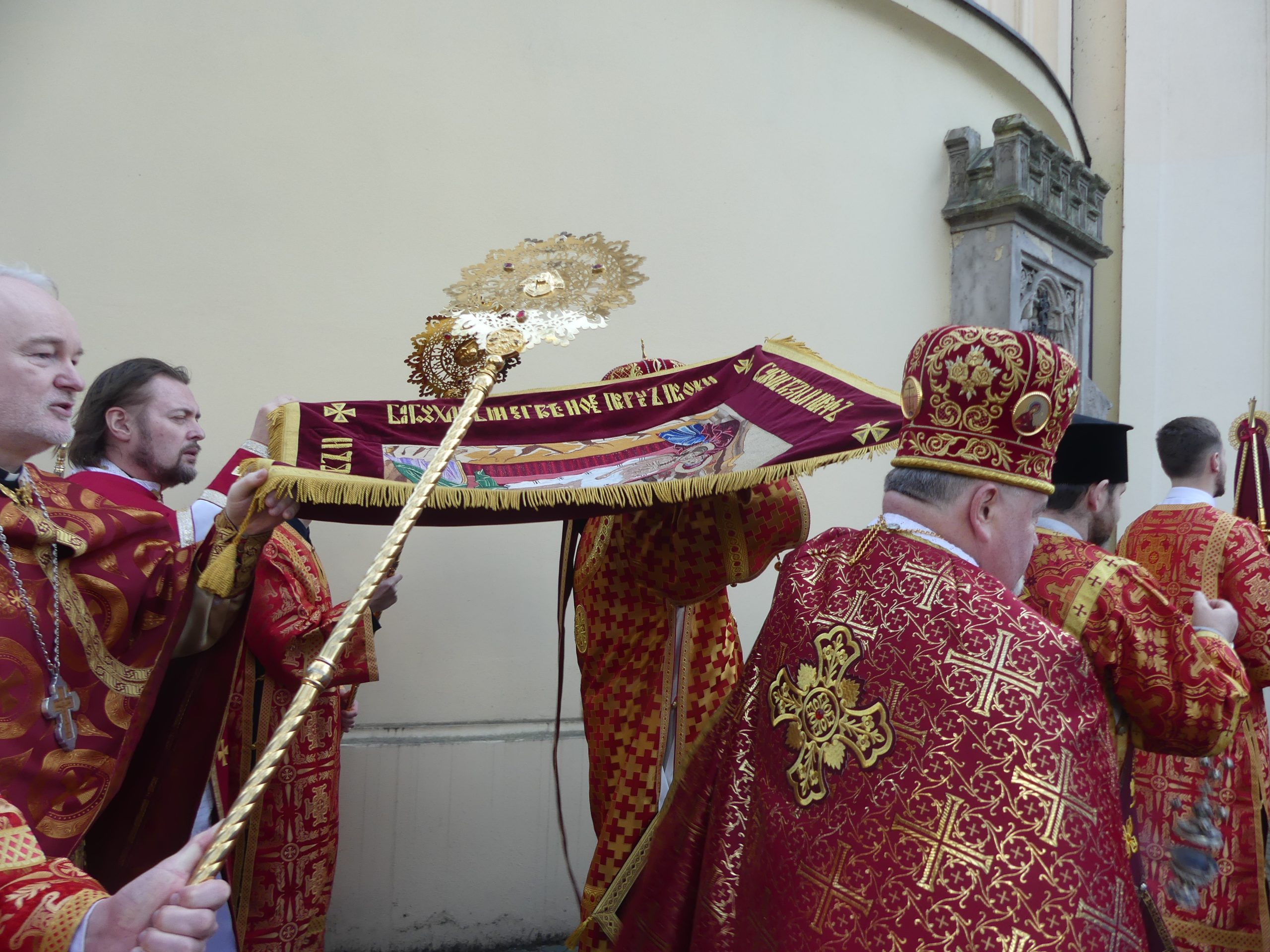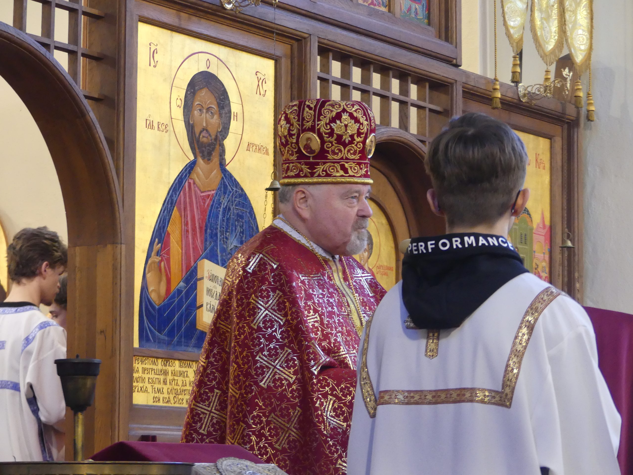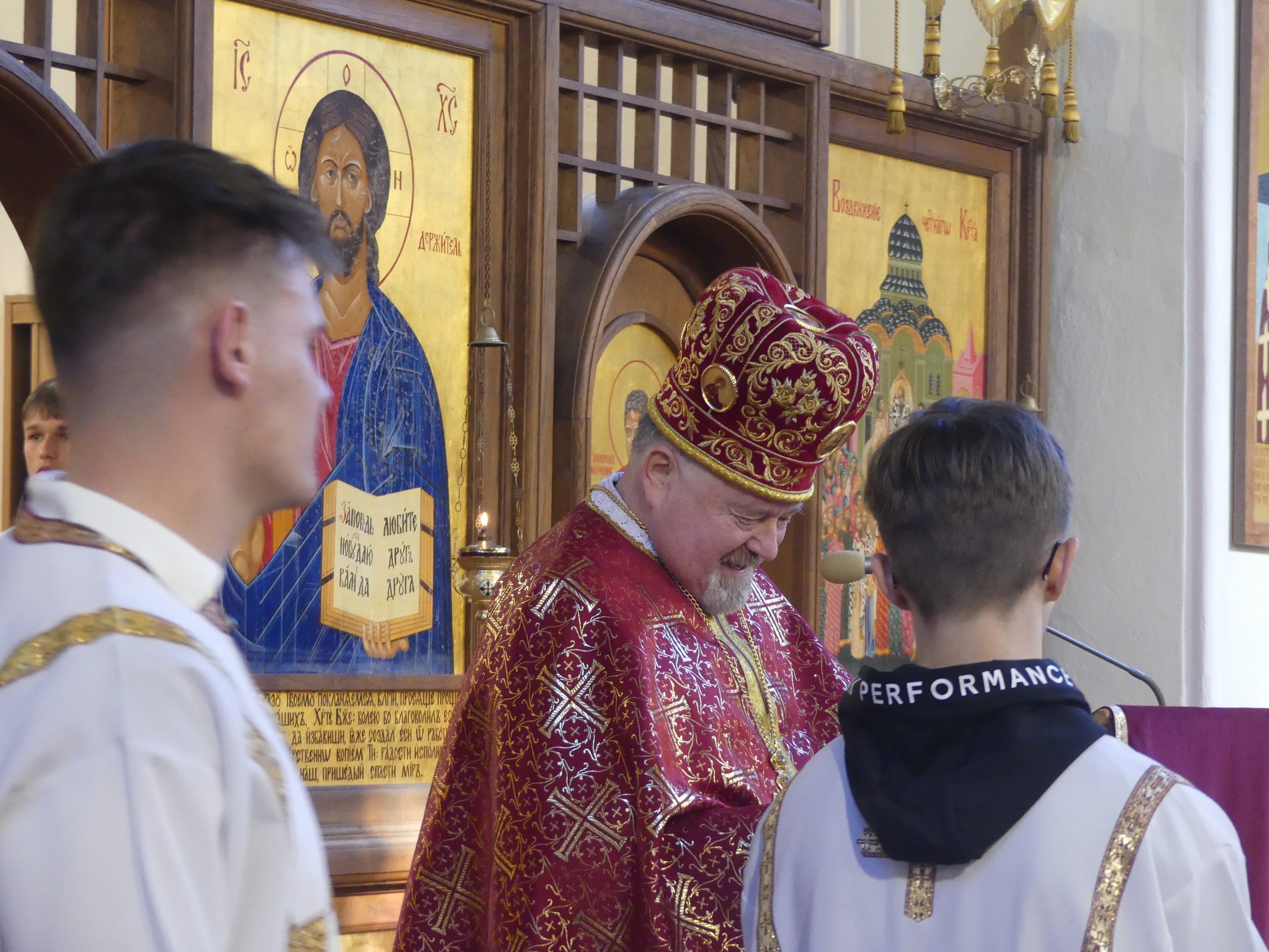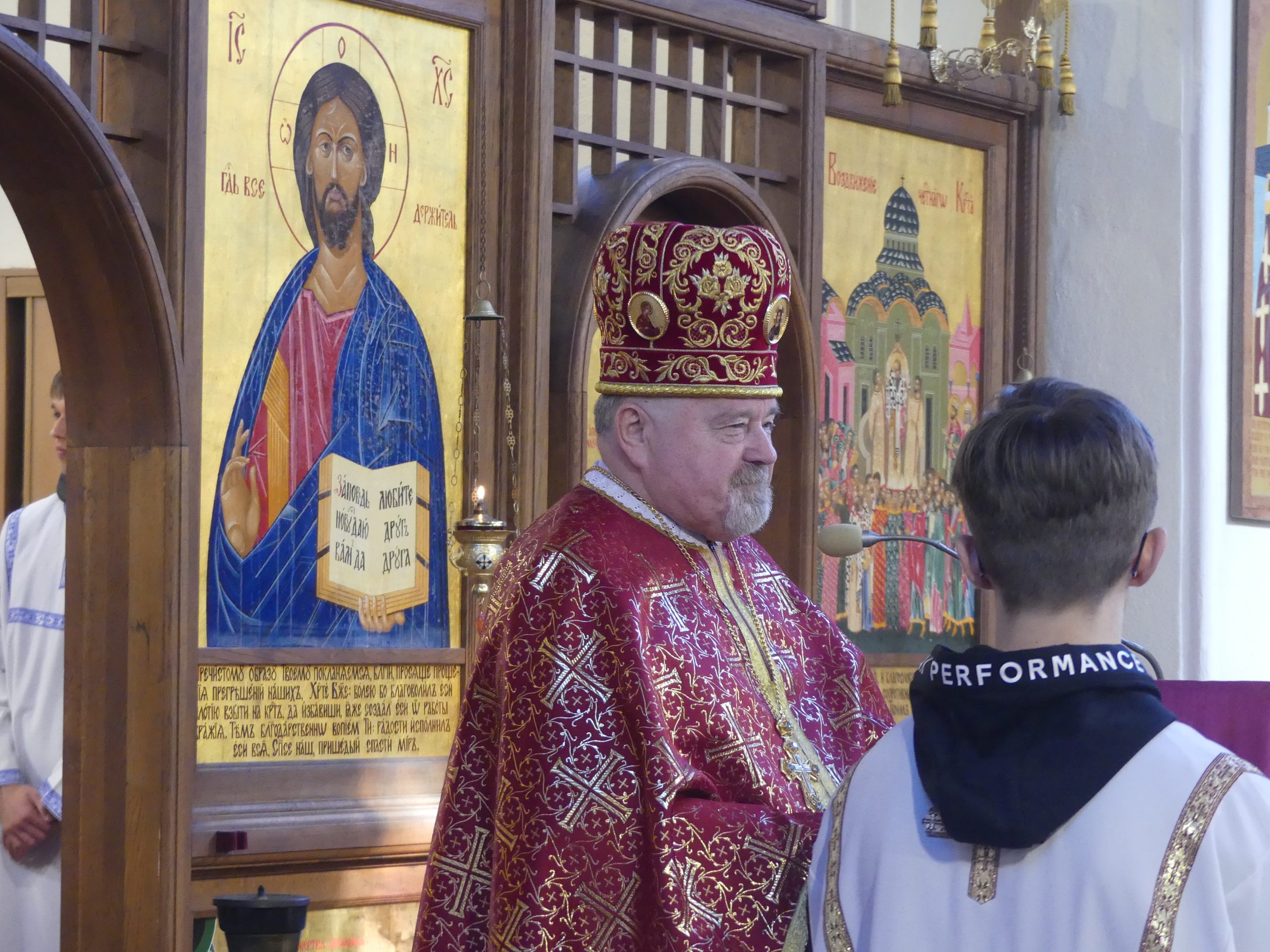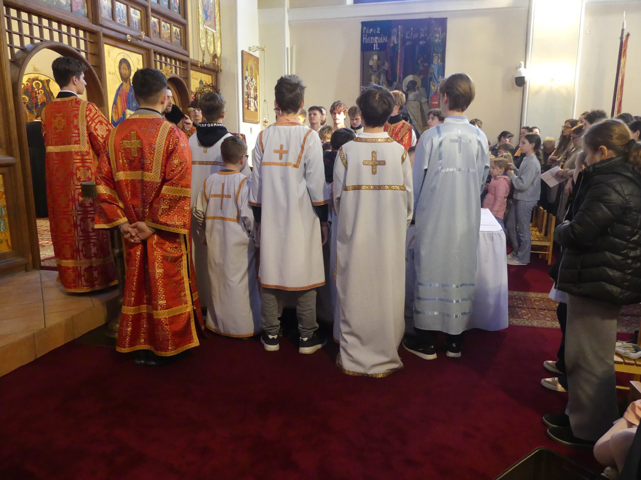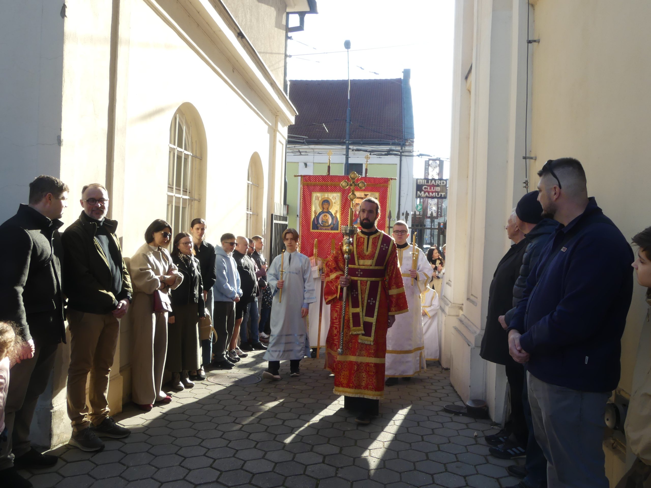 Poobede o 16.00 predsedal vladyka Peter obradom veľkopiatkovej večierne spojenej so sprievodom okolo chrámu s plaštenicou a jej následným uložením uprostred chrámu. Prítomní veriaci si potom poklonou a bozkom uctili plaštenicu, symbolizujúcu plachty, do ktorých bol Ježiš zabalený a uložený v hrobe.