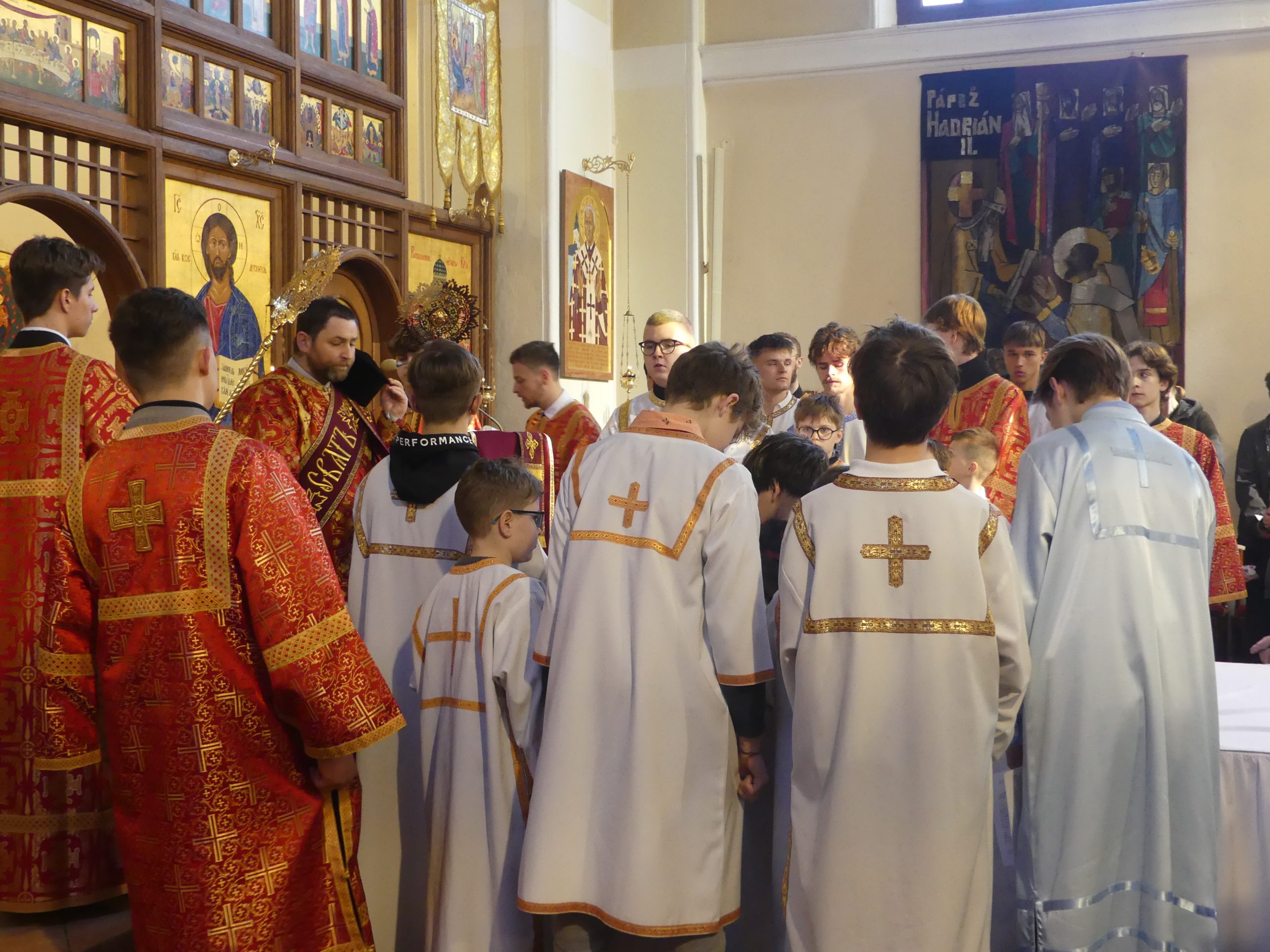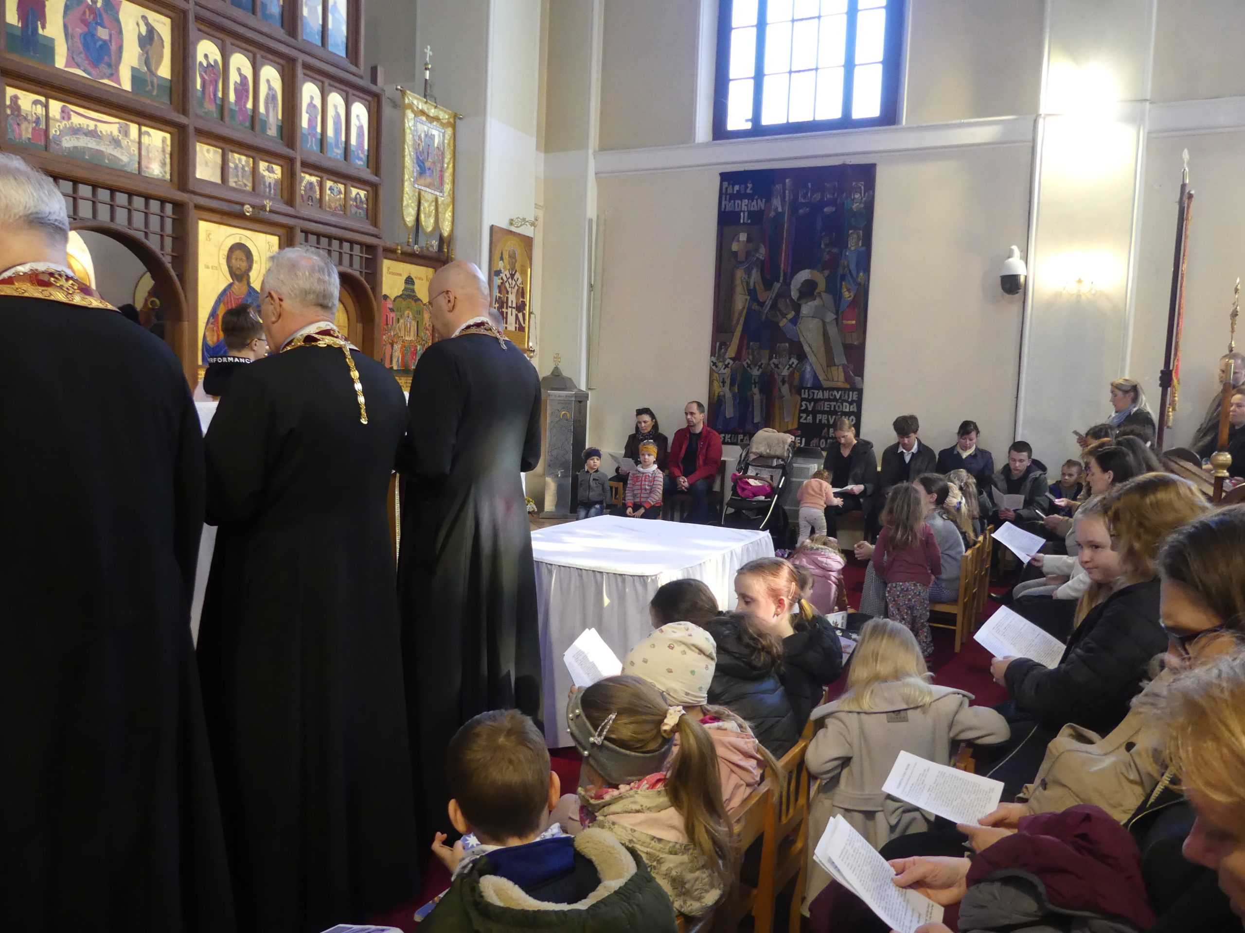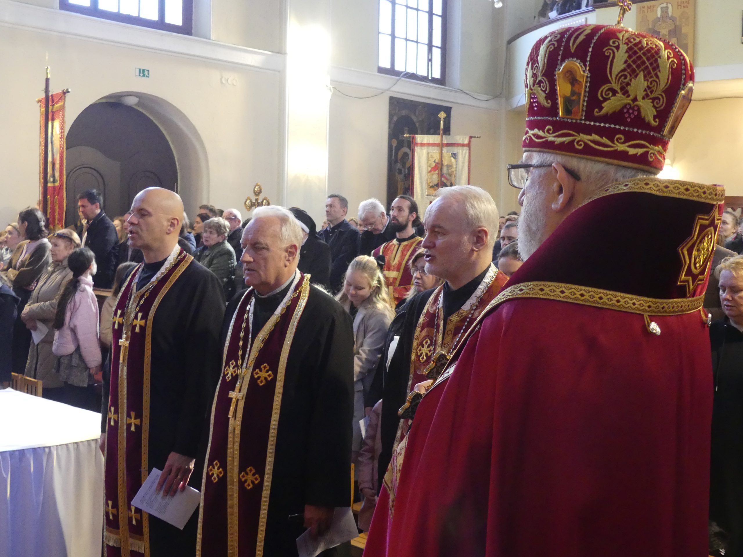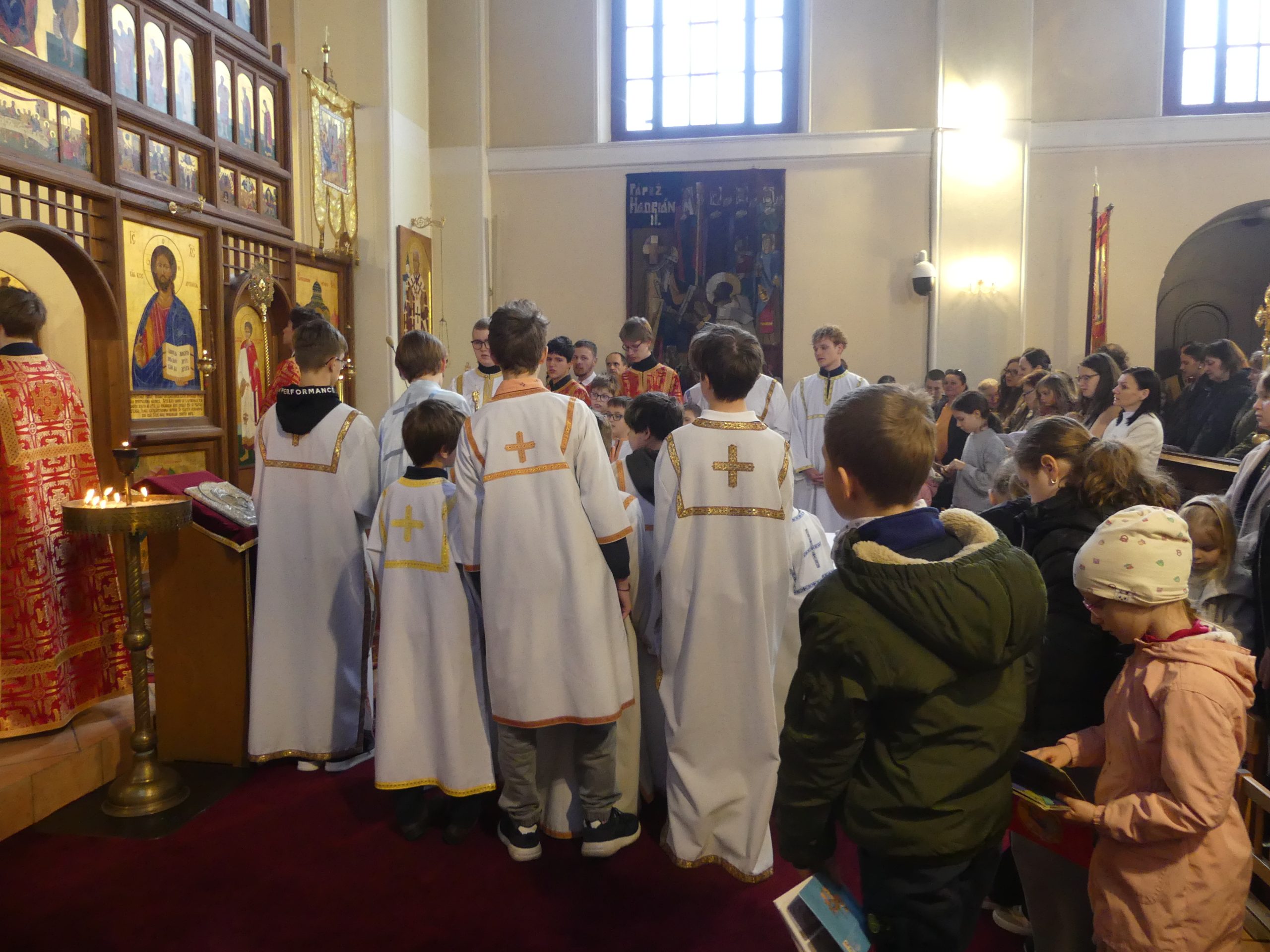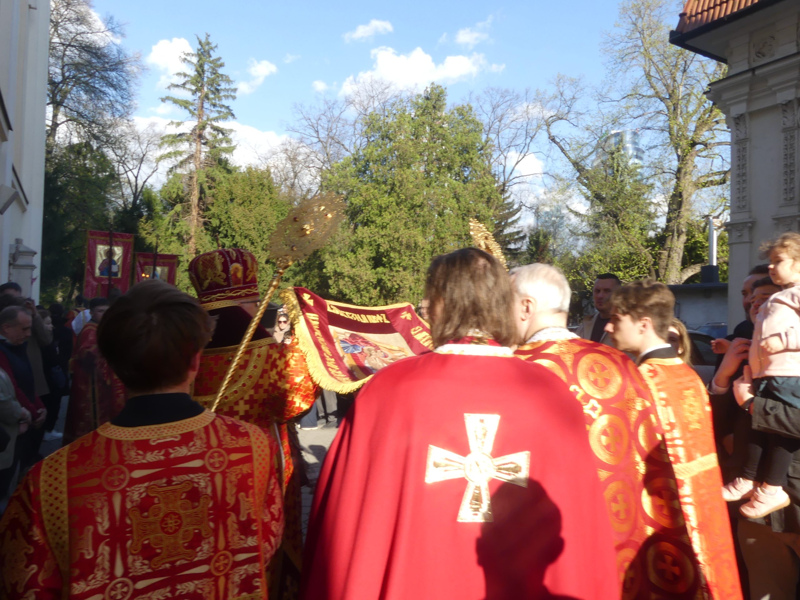 Poobede o 16.00 predsedal vladyka Peter obradom veľkopiatkovej večierne spojenej so sprievodom okolo chrámu s plaštenicou a jej následným uložením uprostred chrámu. Prítomní veriaci si potom poklonou a bozkom uctili plaštenicu, symbolizujúcu plachty, do ktorých bol Ježiš zabalený a uložený v hrobe.