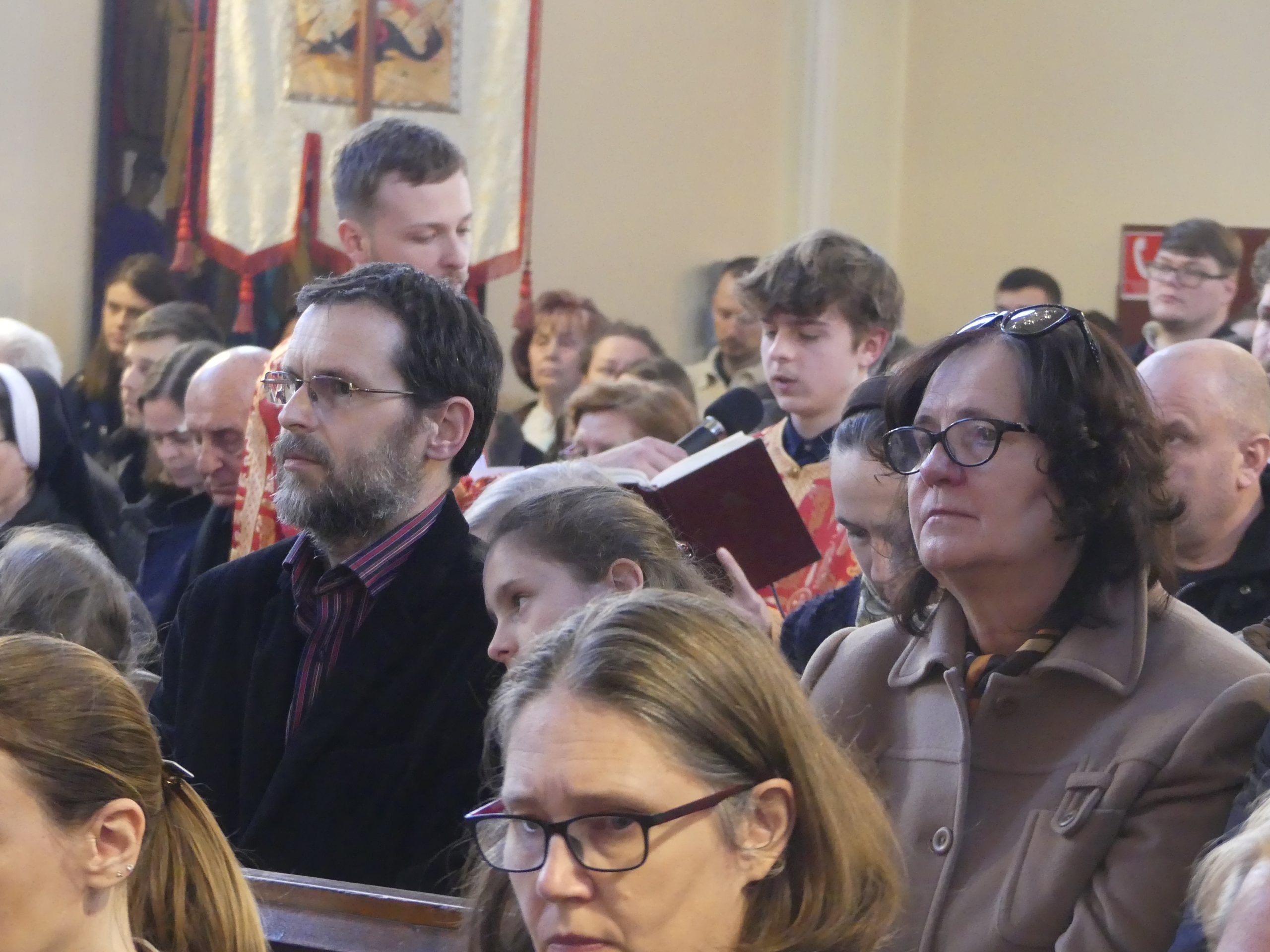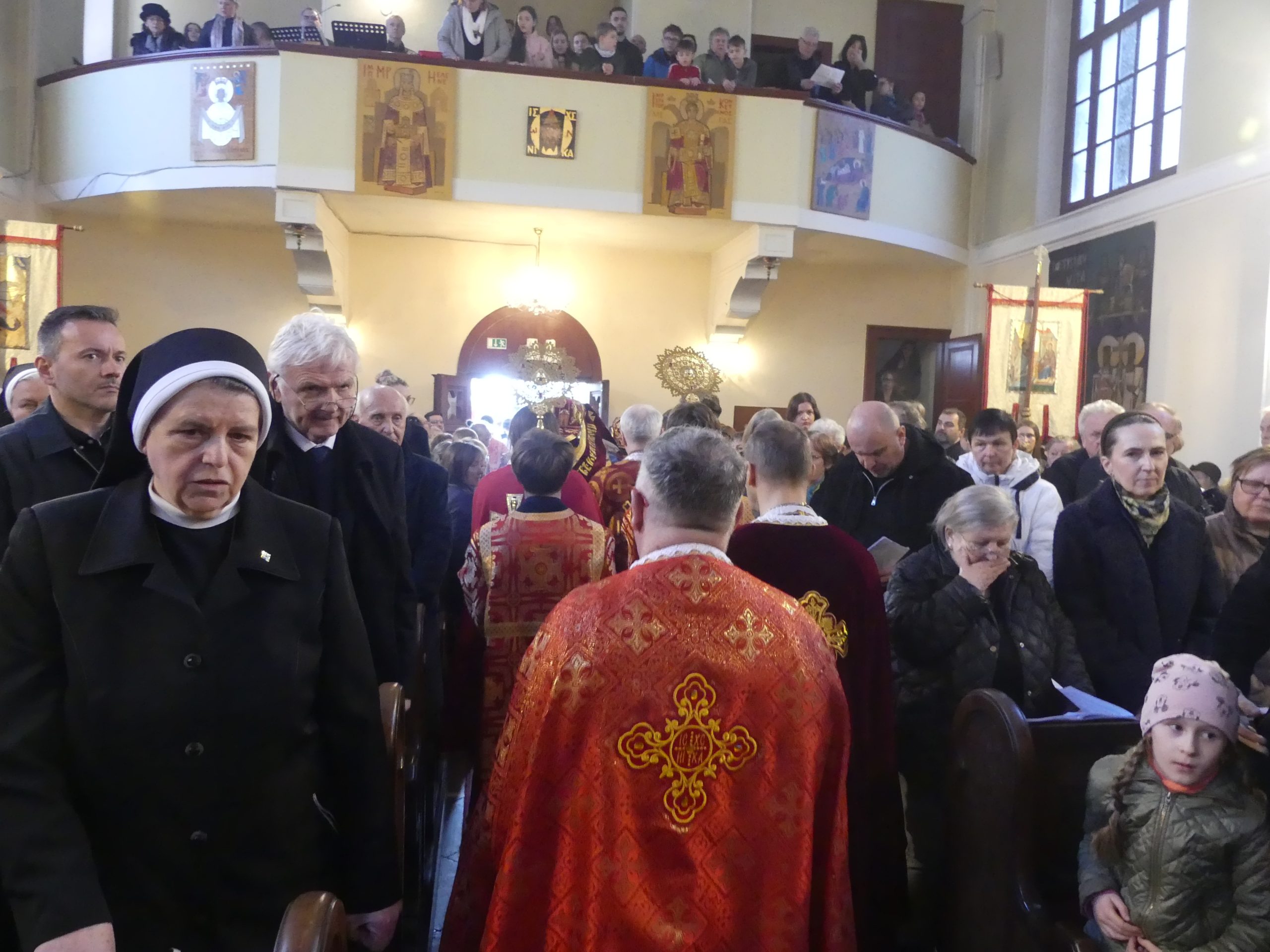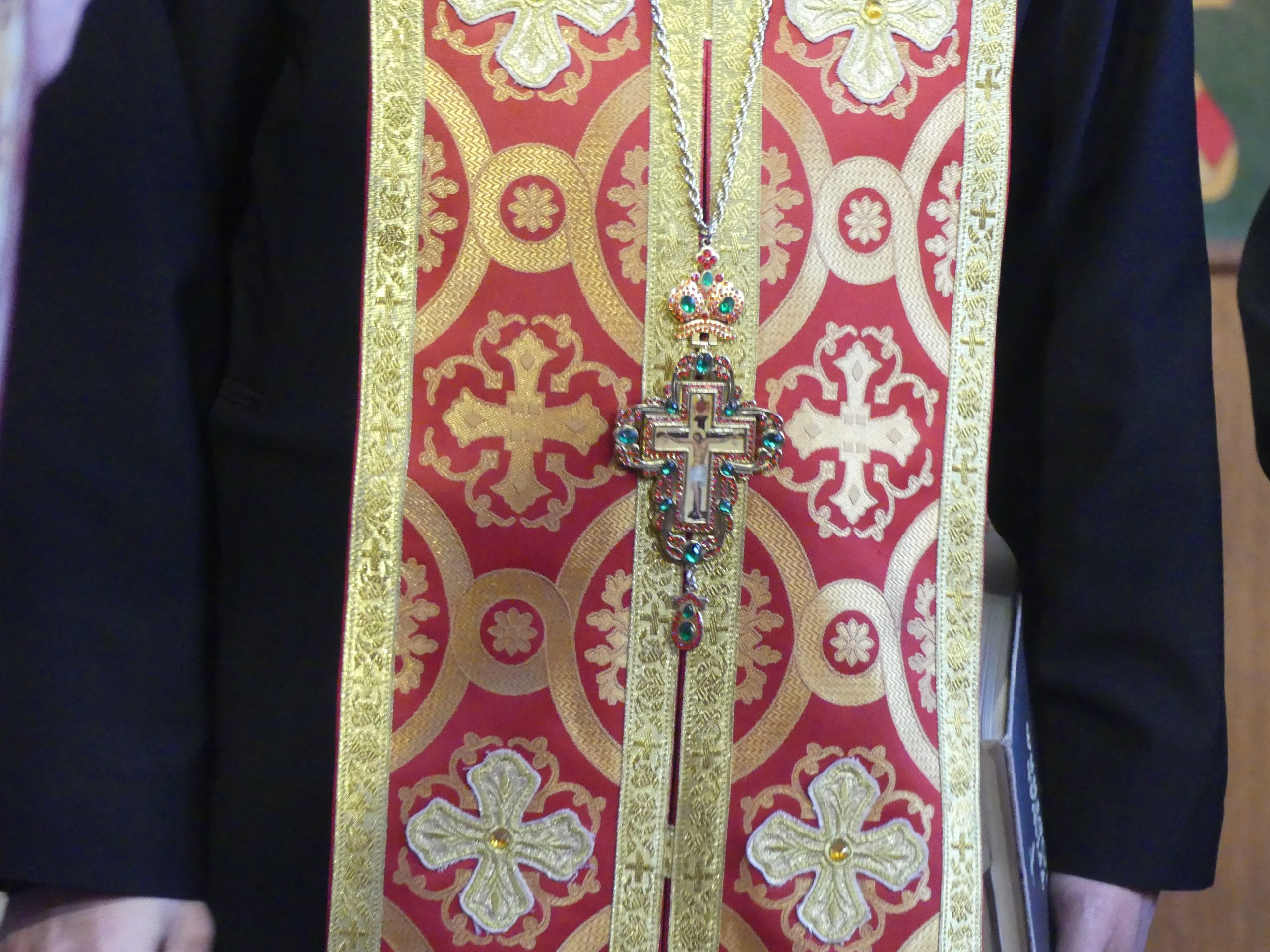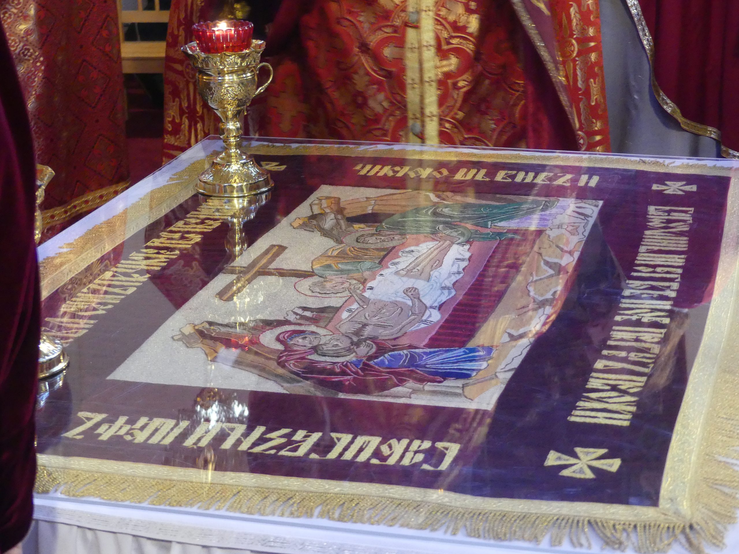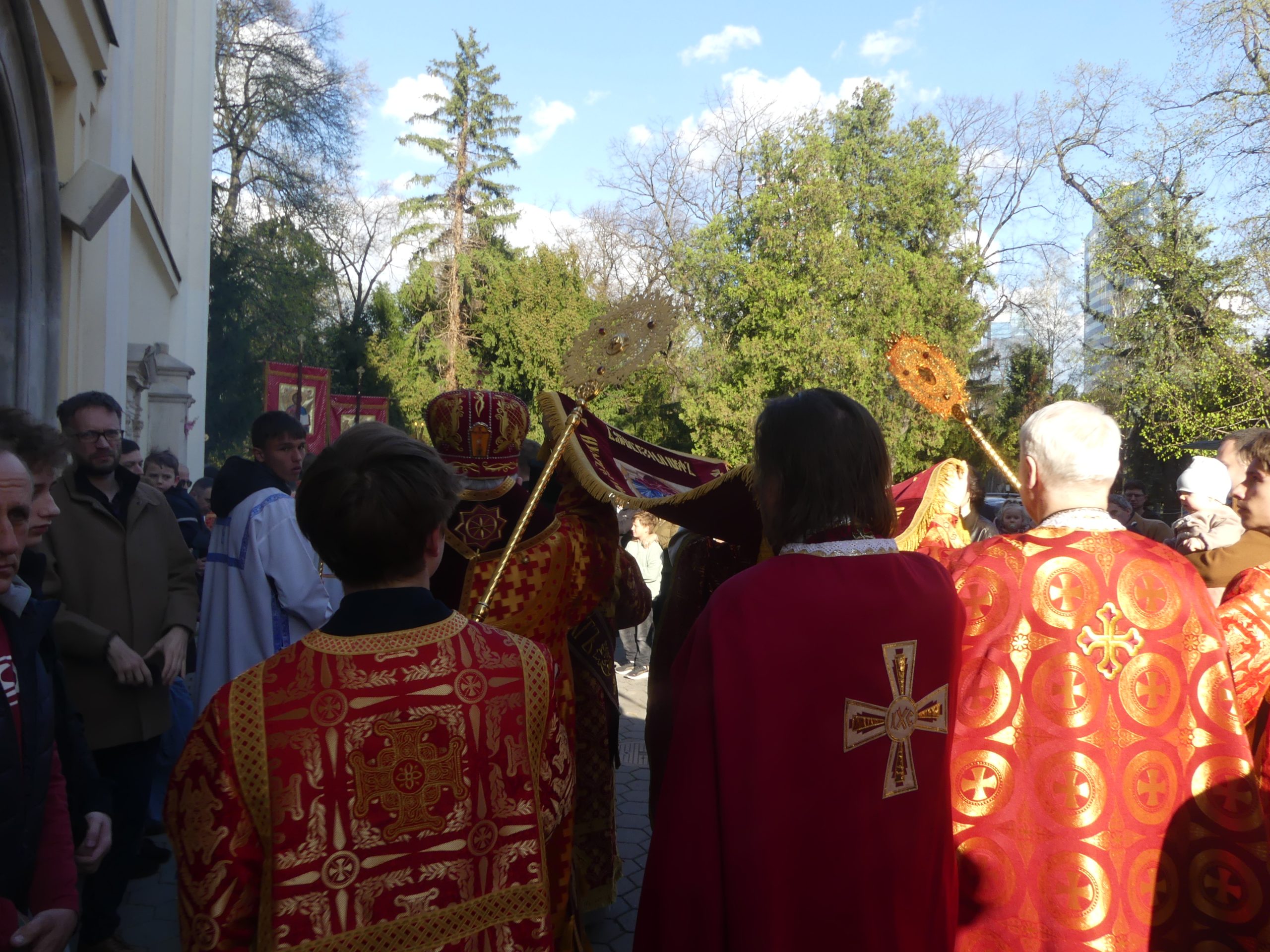 Poobede o 16.00 predsedal vladyka Peter obradom veľkopiatkovej večierne spojenej so sprievodom okolo chrámu s plaštenicou a jej následným uložením uprostred chrámu. Prítomní veriaci si potom poklonou a bozkom uctili plaštenicu, symbolizujúcu plachty, do ktorých bol Ježiš zabalený a uložený v hrobe.