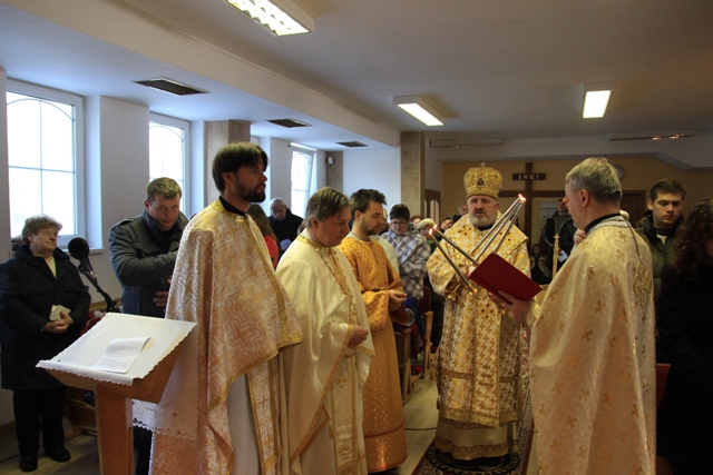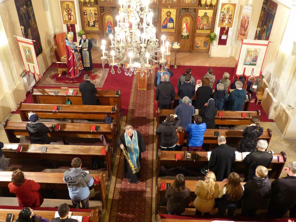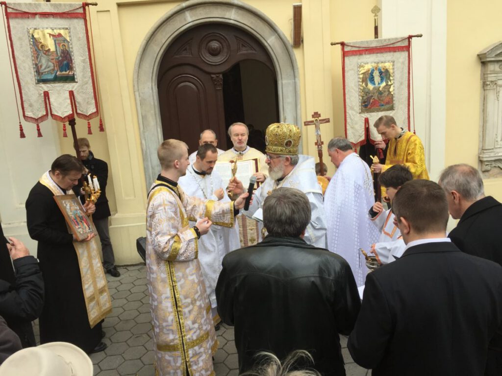V pondelok Svetlého týždňa vladyka Peter slúžil v katedrále archijerejskú liturgiu o 9.00 hod., po ktorej nasledovalo myrovanie a tradičný sprievod okolo chrámu s čítaním