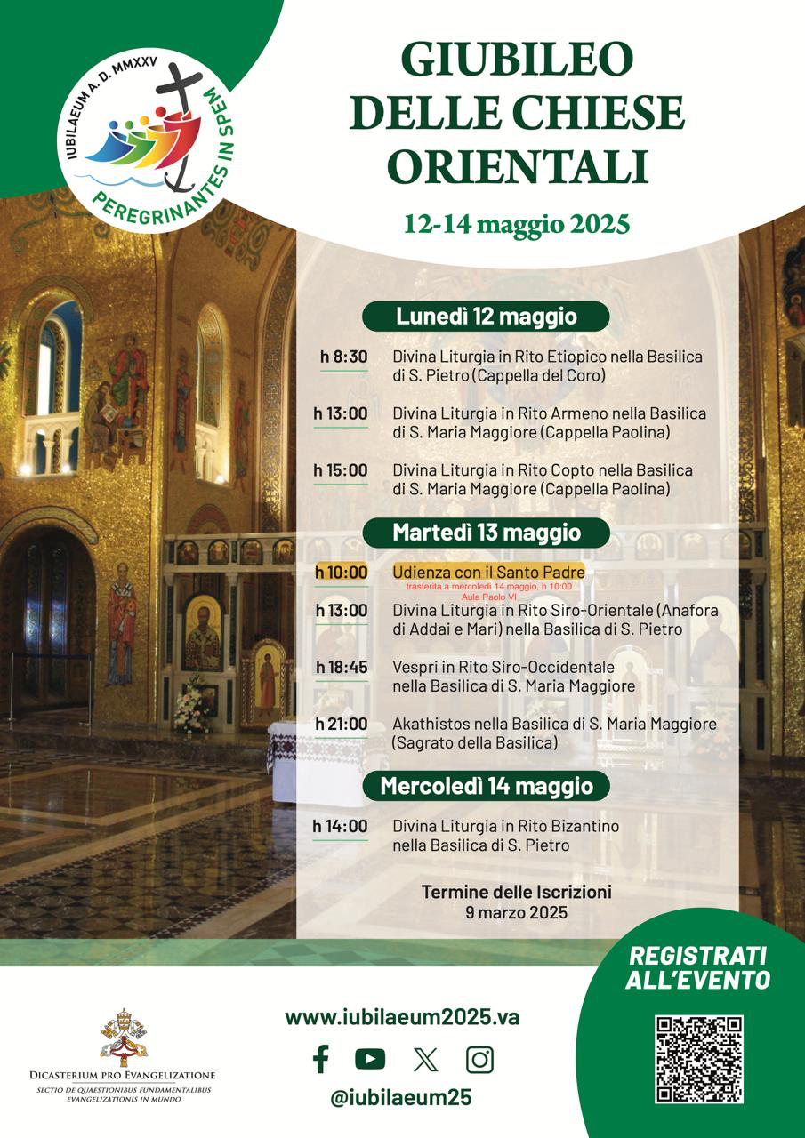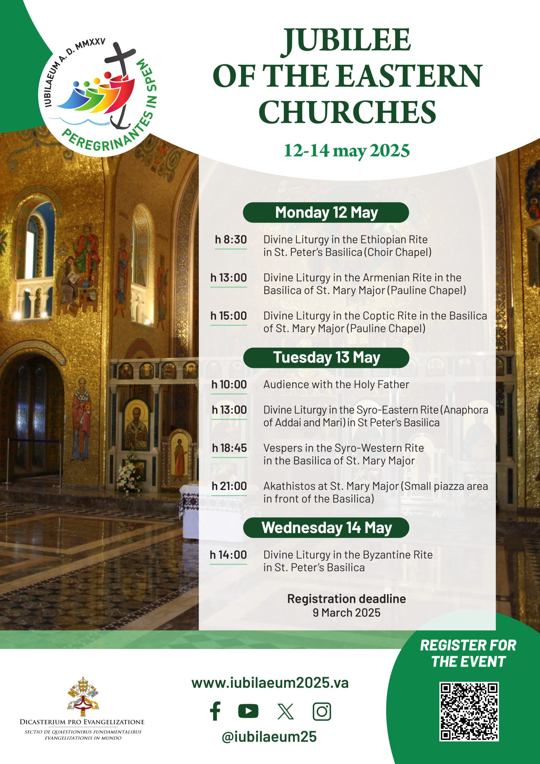 Dikastérium pre evanjelizáciu (Sekcia pre základné otázky evanjelizácie vo svete), ktoré má na starosti organizáciu Jubilejného roka 2025, zaradilo do všeobecného kalendára jubilejných podujatí aj Jubileum východných cirkví, ktoré sa bude konať v Ríme od 12. do 14. mája 2025.