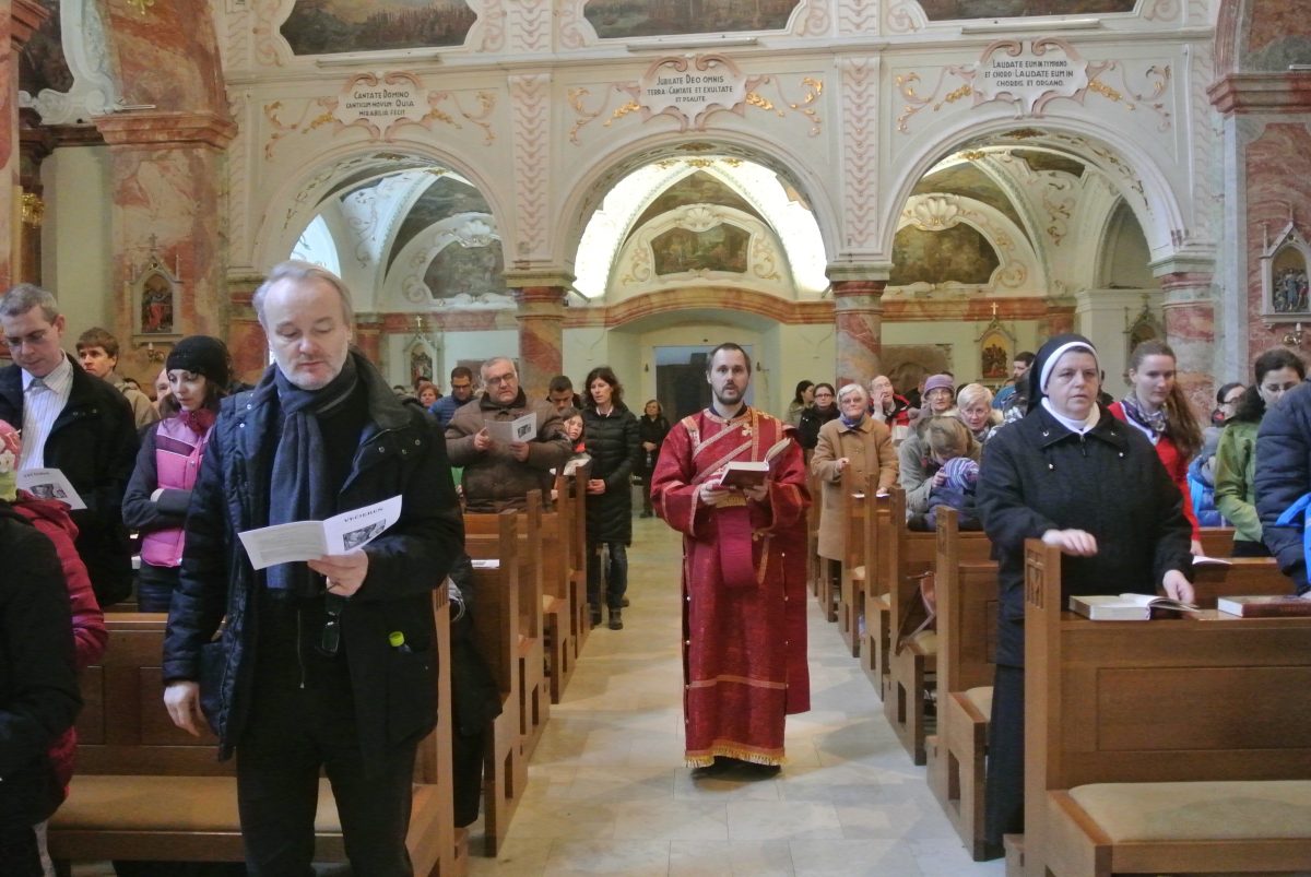 Program pokračoval v miestnej mariánskej Bazilike minor Narodenia Panny Márie veľkopôstnou večierňou s modltibou sv. Efŕema Sýrskeho a poklonami, ktorej predsedal vladyka Peter, diakonizoval diakon Andrej Škoviera. V rámci večierne predniesol eparcha aj katechézu na tému tohtoročného 31. svetového dňa mládeže, ktorá korešponduje so Svätým rokom milosrdenstva a znie: „Blahoslavení milosrdní, lebo oni dosiahnu milosrdenstvo“ (Mt 5, 7). Poukázal na to, že v istom zmysle jedinú moc, ktorú Cirkev dostala, je moc odpúšťať hriechy. A toto odpustenie sa má uskutočňovať v každodennom živote, nie raz, dva razy, tri razy, ale – ako hovorí Kristus – sedemdesiat sedem ráz, teda neústavne.