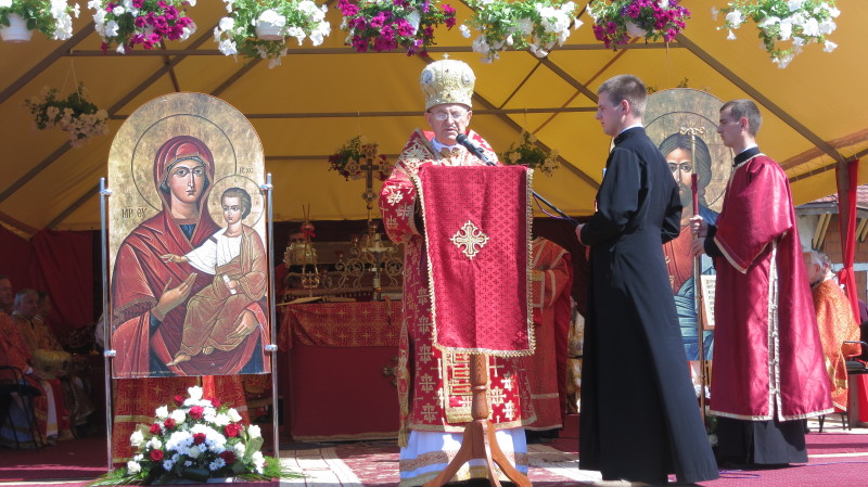 Pred začiatkom archijerejskej služby božej sa konal sprievod, počas ktorého bola prinesená rakva s relikviami blaženého Teodora k poľnému oltáru. Jeho Eminenciu kardinála ako aj prítomných vladykov privítal v úvode vysokoprepodobný archimandrita Petro-Pavlo (Bereš), rektor Užhorodskej bohosloveckej akadémie.