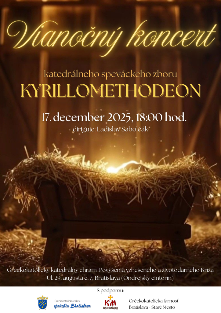 Gréckokatolícka eparchia Bratislava a Farnosť Bratislava-Staré Mesto srdečne pozývajú na Vianočný koncert Zboru Kyrillomethodeon. Prídťe na chvíľku spomaliť a prísť si vypočuť, a možno aj
