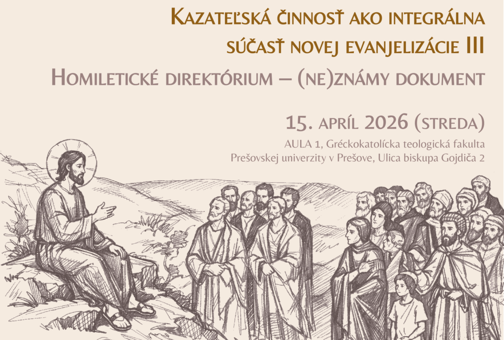 Gréckokatolícka teologická fakulta pozýva na konferenciu na tému KAZATEĽSKÁ ČINNOSŤ AKO INTEGRÁLNA SÚČASŤ NOVEJ EVANJELIZÁCIE III, ktorá sa uskutoční v stredu 15. apríl na pôde