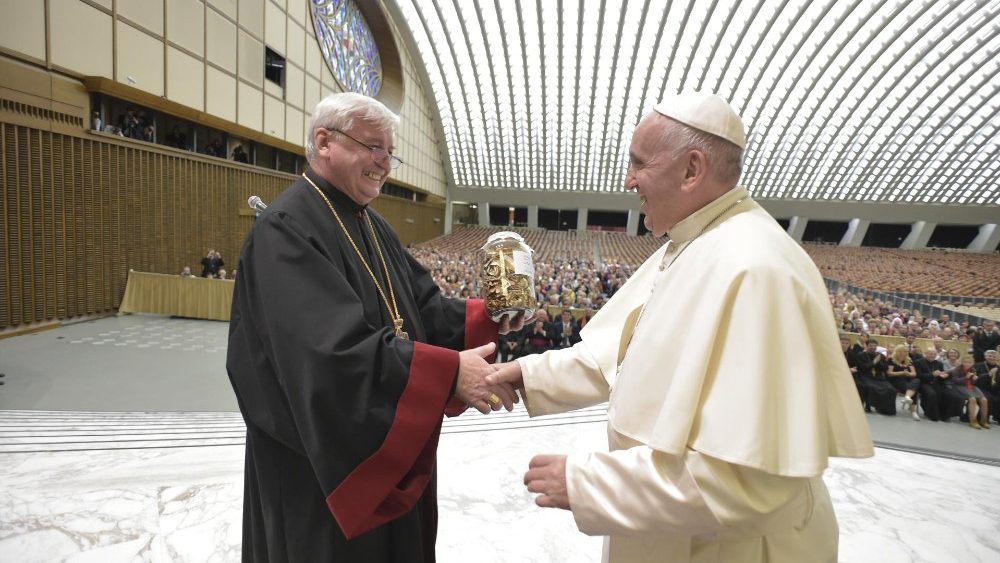 Prinášame príhovor Svätého Otca Františka slovenským gréckokatolíkom, účastníkom Ďakovnej púte Prešovskej archieparchie v Jubilejnom roku 200-ročnice zriadenia eparchie a ďalších výročí. Skupinu 1300 pútnikov Svätý Otec prijal v sobotu 6. októbra v Aule Pavla VI. pol hodinu pred poludním.