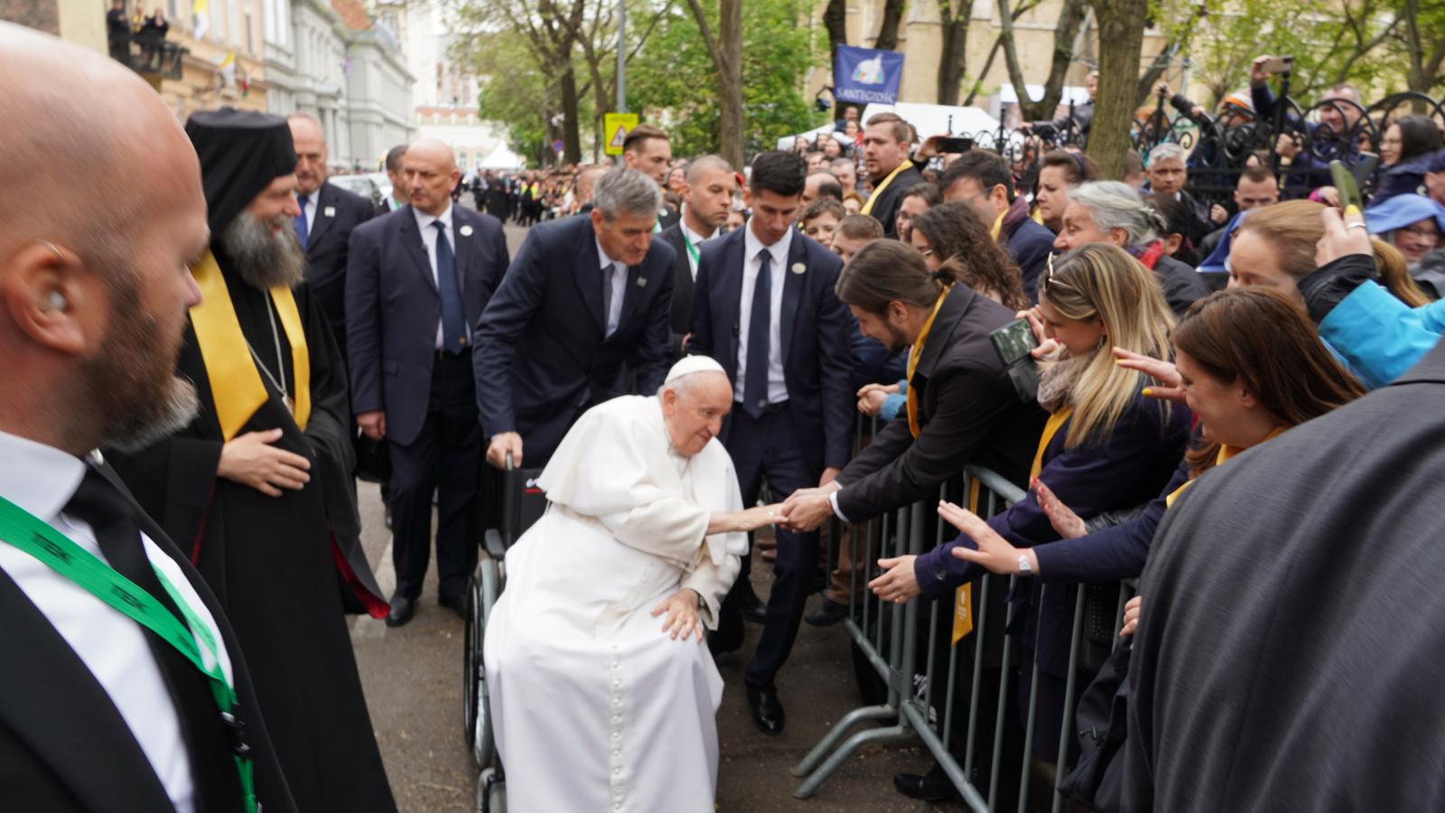 Po tom, čo pápež František vyšiel pred chrám, pozdravil a požehnal gréckokatolíckych bohoslovcov, z ktorých mnohí si so Svätým Otcom podali ruky. Na rímskeho veľkňaza čakal pápežský biely Fiat, ale na veľkú radosť tých, ktorí stáli za bariérou, pápež naznačil, že by sa rád stretol aj s gréckokatolíckymi veriacimi čakajúcimi na námestí. Mnohí z nich mali možnosť podať si s pápežom ruku, prijať požehnanie a krátko sa s ním stretnúť.