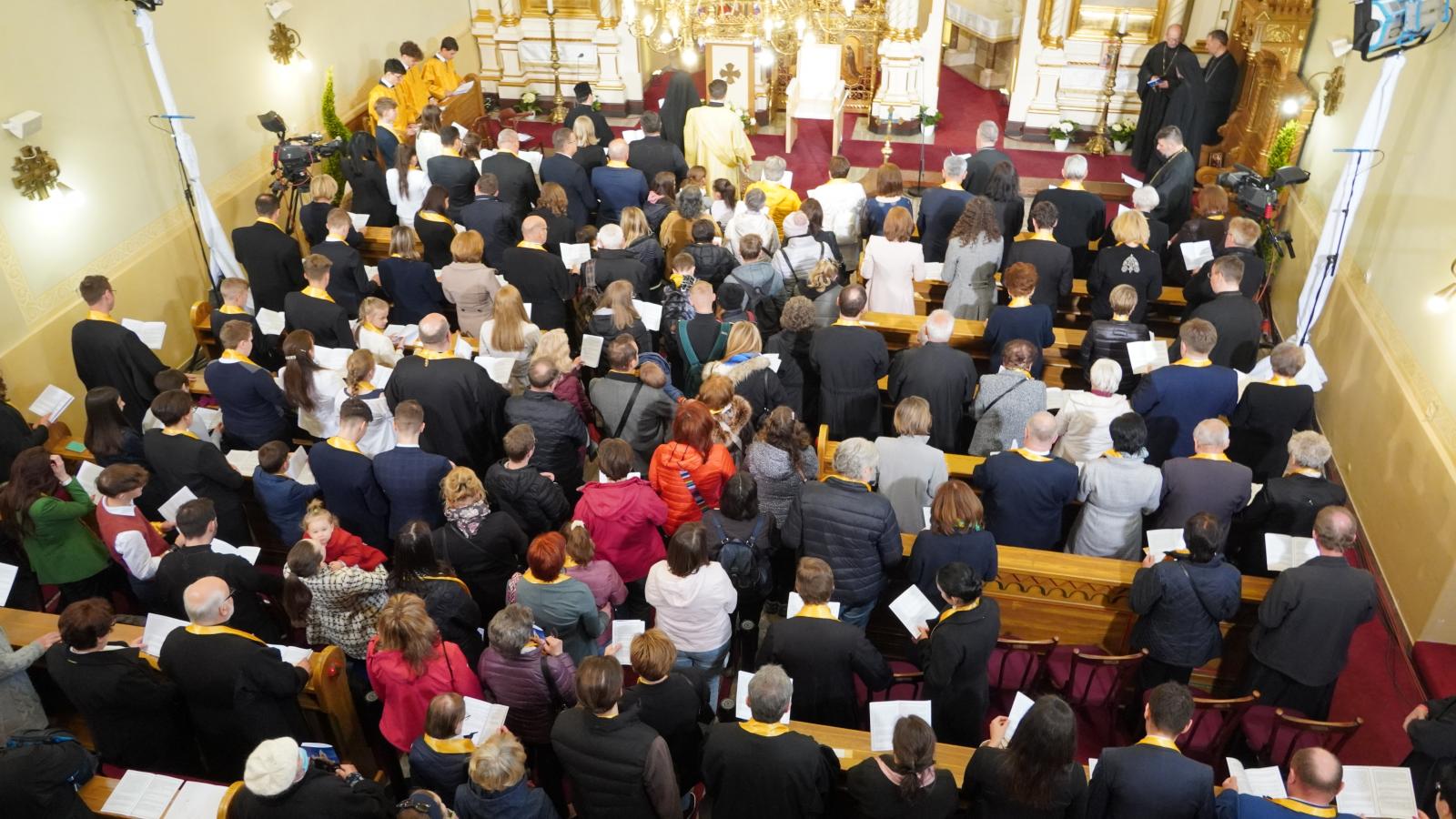 Po odchode Svätého Otca pokračoval v chráme spev hymnu Akathist, ktorý po otvorení zábran spievali stovky ľudí spolu s veriacimi, ktorí prúdili do chrámu.
