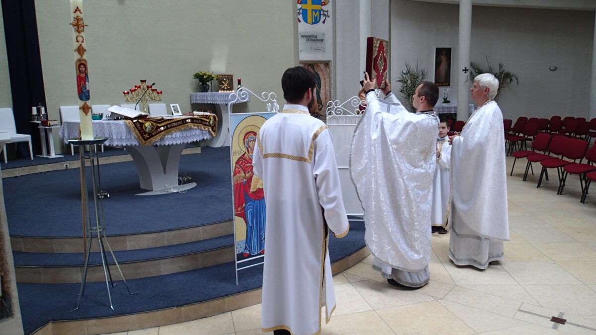 V zastúpení vladyku Petra Rusnáka, ktorý bol v tom čase odcestovaný, sa veriacim v homílii povzbudivo prihovoril o. Andrej Škoviera. Na záver liturgie zároveň prečítal pozdravný list bratislavského eparchu.
