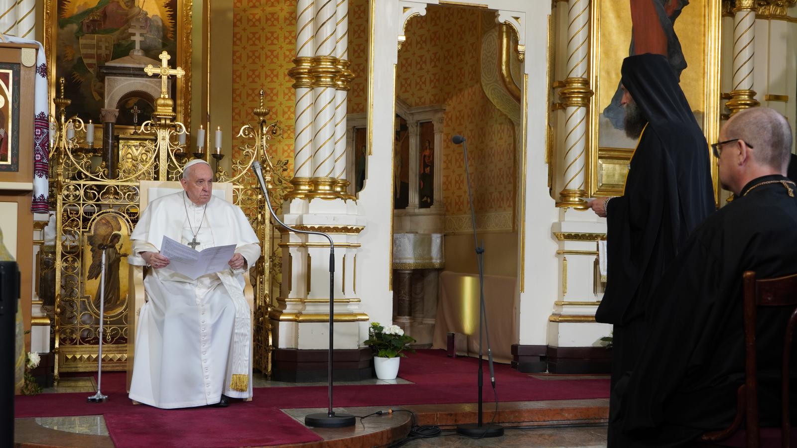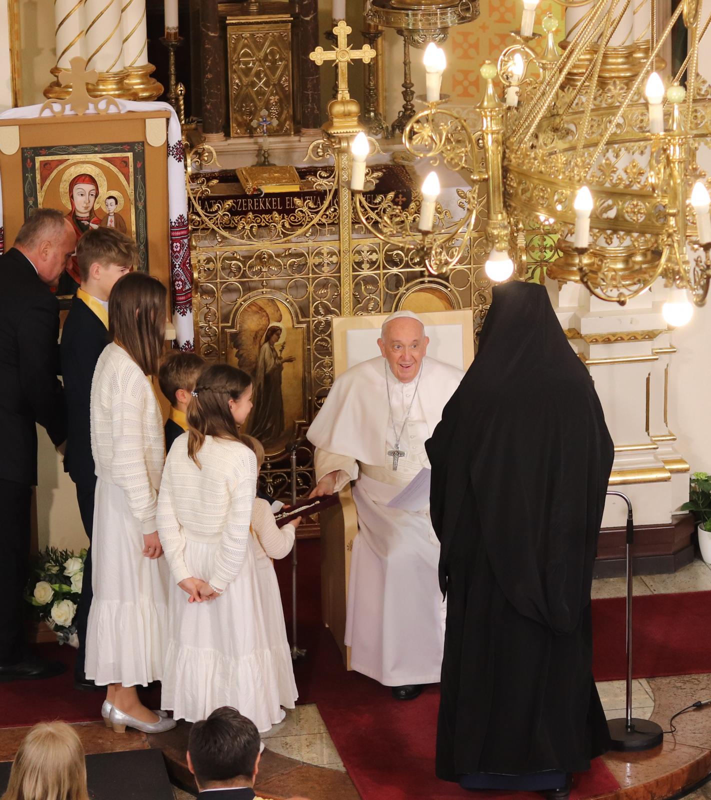 Metropolita Filip pozdravil pápeža Františka v sobotu 29. apríla doobeda počas jeho návštevy gréckokatolíckeho chrámu na Ružovom námestí v Budapešti.