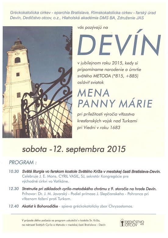 Devin_12_sept_2015V sobotu, 12. septembra 2015 bude na Devíne v Kostole sv. Kríža slúžiť arcibiskup Cyril Vasiľ spolu s vladykom Petrom Rusnákom  archijerejskú liturgiu so začiatkom o 10:30 hod.