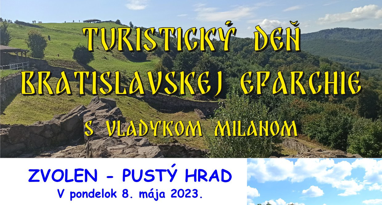 Bratislavská eparchia pozýva na celoeparchiálny turistický deň s vladykom Milanom Lachom, ktorý sa uskutoční v pondelok 8. mája 2023. Miesto stretnutia bude vo Zvolene na parkovisku pod Pustým hradom o 10:00 hod. Cieľom bude Pustý hrad Zvolen.
