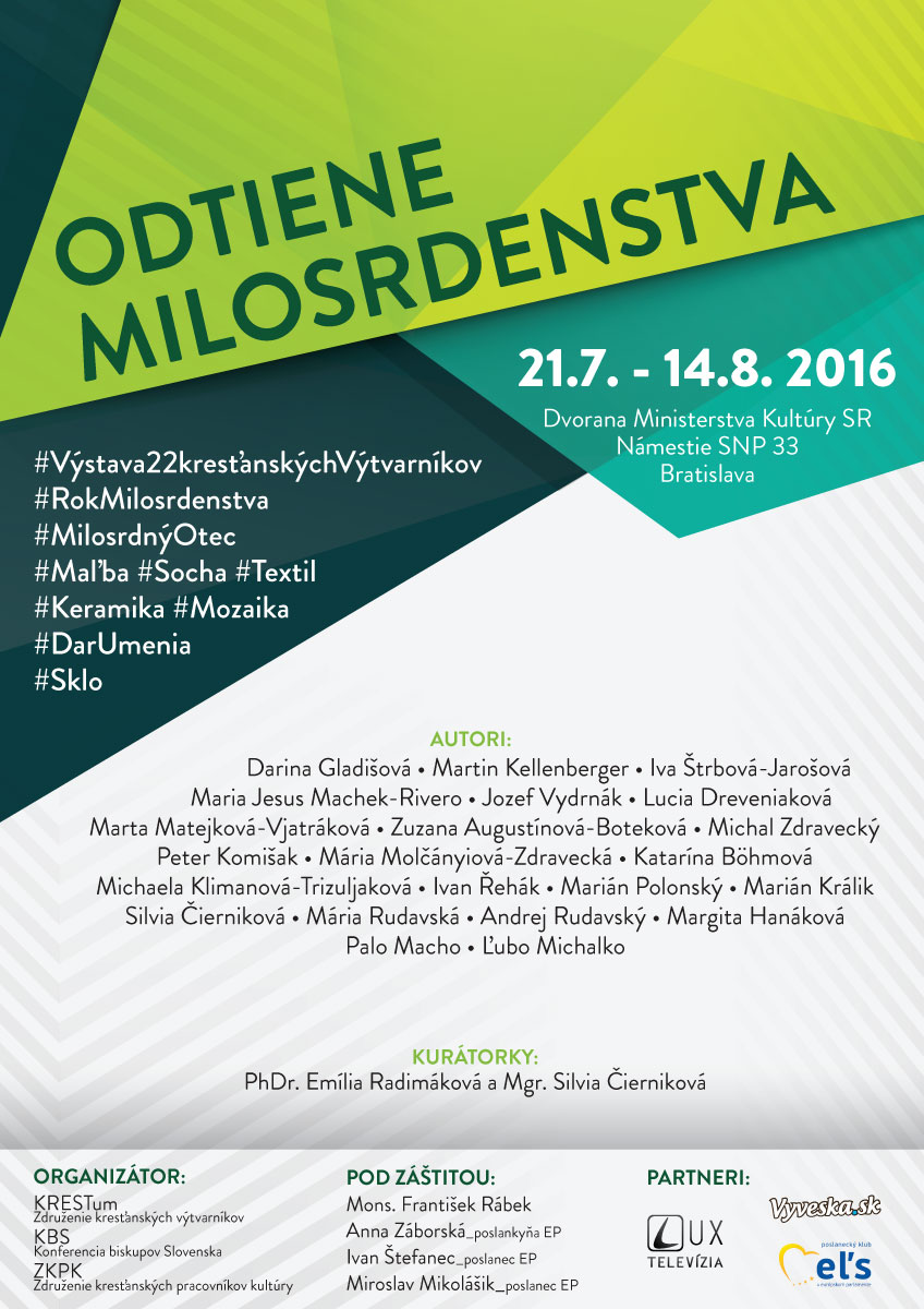 V rámci Roku milosrdenstva bude dňa 21. júla 2016 o 18,00 hod. /štvrtok/ v Dvorane Ministerstva kultúry SR, námestie SNP 33, Bratislava otvorená výstava ODTIENE MILOSRDENSTVA.