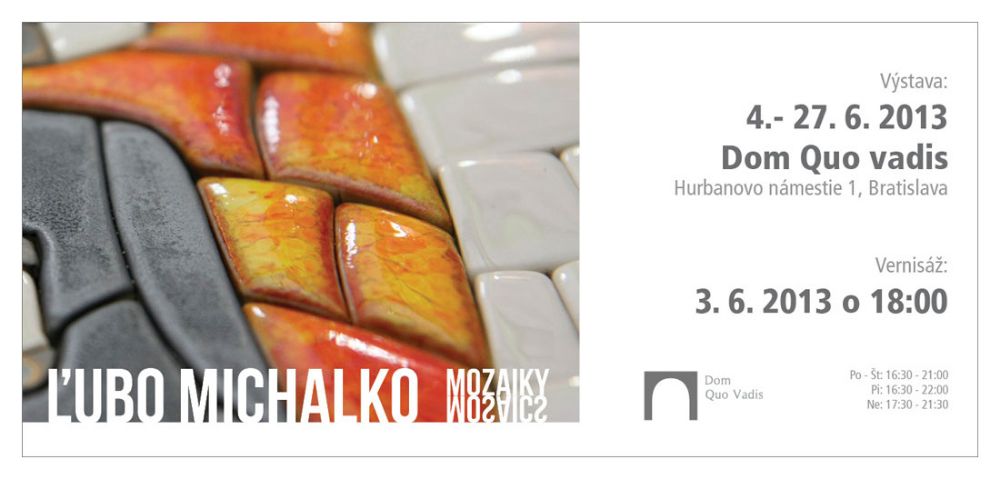 Ľubomír Michalko, gréckokatolícky umelec z Bratislavy pozýva na svoju prvú výstavu, ktorá sa bude potrvá do 27. júna 2013. v Dome Quo vadis v Bratislave (Hurbanovo námestie 1).