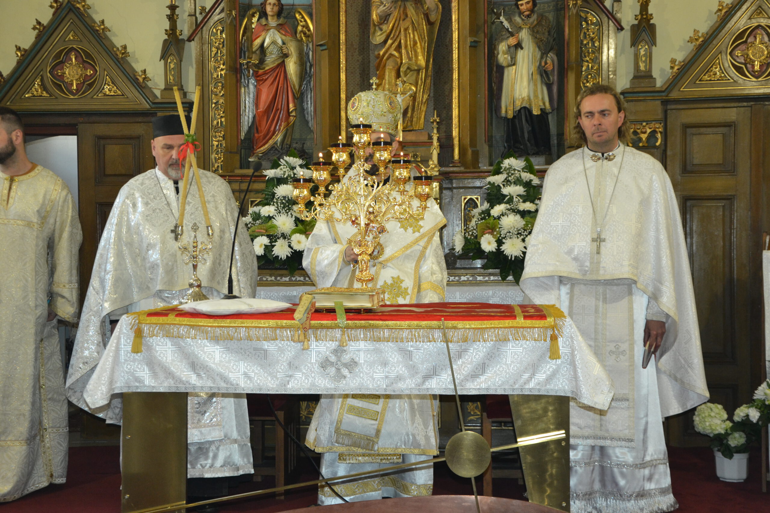 Farské spoločenstvo vstúpilo do slávenia už v sobotu, a to modlitbou veľkej večierne s požehnaním litijných darov. V nedeľu doobeda sa veriaci modlili Moleben k blahoslavenému Vasiľovi Hopkovi, po ktorom nasledovala archijerejská liturgia. Predsedal jej vladyka Milan Lach SJ pomocný biskup Bratislavskej eparchie, spoluslúžili o. František Takáč, farár zo Šumiaca a domáci kňaz o. Ján Kovaľ.
