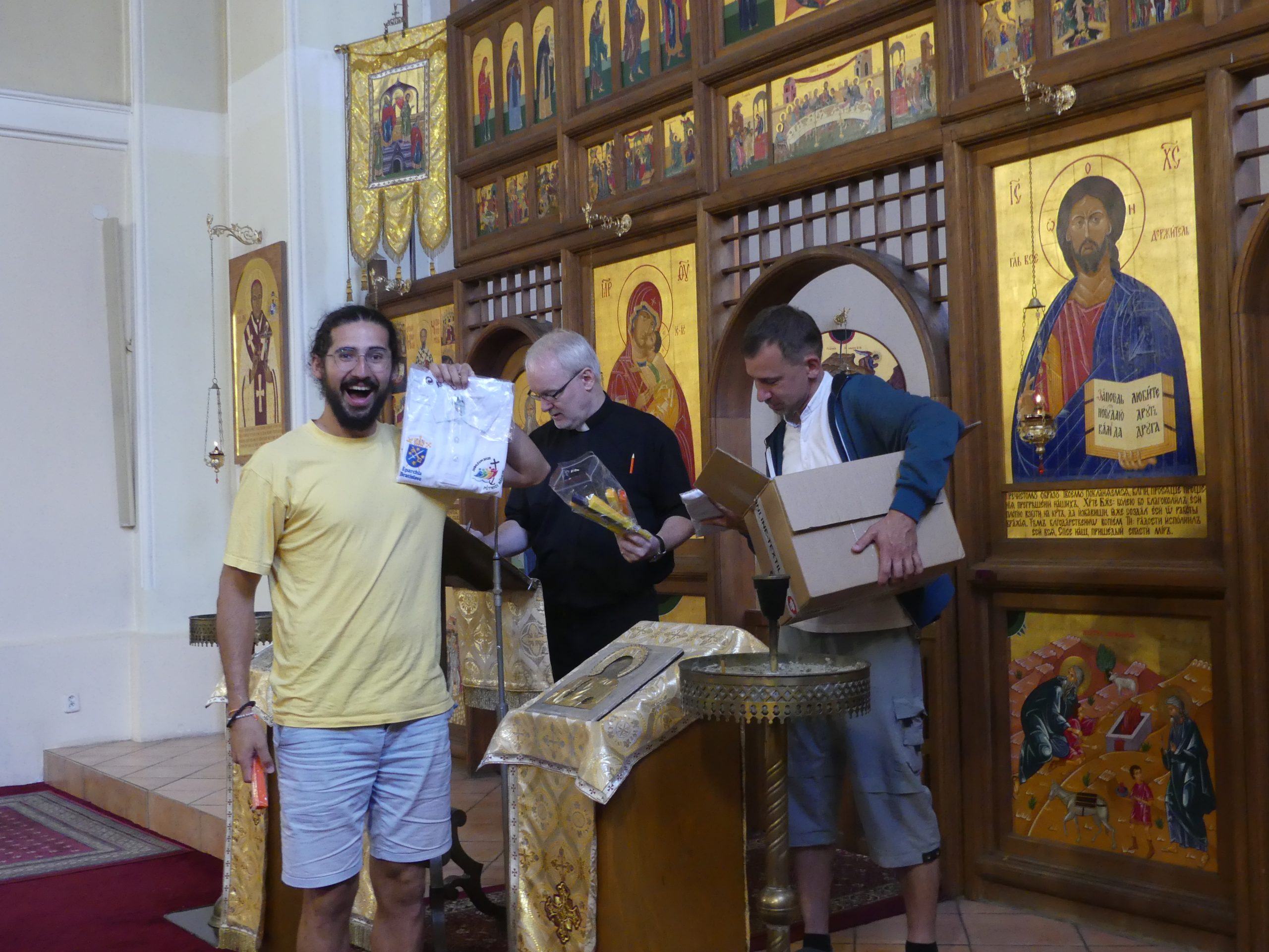 Pútnici vyrazili do Ríma v pondelok ráno a svoju púť začali v bratislavskej katedrále modlitbou a katechézou z cirkevných otcov o krste, ktorú predniesol o. Peter Sabol. Každý z účastníkov dostal biele tričko s logom eparchie a jubilea, vejár a brožúrku s modlitbami – veci špeciálne pripravené na túto púť.