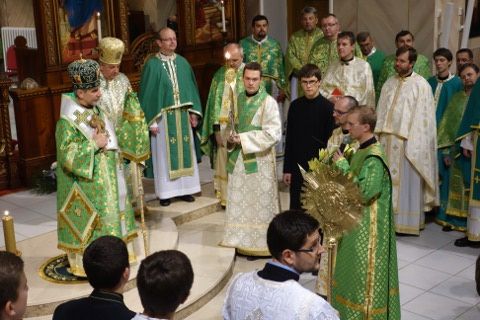 V kázni vladyka uviedol paralelu medzi udalosťou poslednej večere, kde apoštoli prijali svoje kňazské vysvätenie, a modlitbovým bdením vo večeradle, ktoré sa zakončilo príchodom Svätého Ducha. Dnešná kultúra života a vzťahov je povrchná. Preto vladyka apeloval na ochotu prijať dary Svätého Ducha, ktoré robia ľudský život verným a šťastným. Ide najmä o dar Božej lásky, ktorá je rozliata v našich srdciach prostredníctvom Ducha. Pred prositeľnou ekténiou prijali dvaja poddiakoni zo Sečoviec Ladislav Baran a Martin Miňo prvý stupeň kňazstva – diakonát. Svätenie prijali v slobodnom stave.