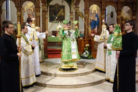 Michalovce (19.05.2013) Na sviatok Päťdesiatnice – Zostúpenia Svätého Ducha sa v bazilike minor v Michalovciach konala celoeparchiálna odpustová slávnosť Košickej gréckokatolíckej eparchie, pri ktorej si pripomenuli aj 1.výročie vyhlásenia tohto chrámu za baziliku minor.