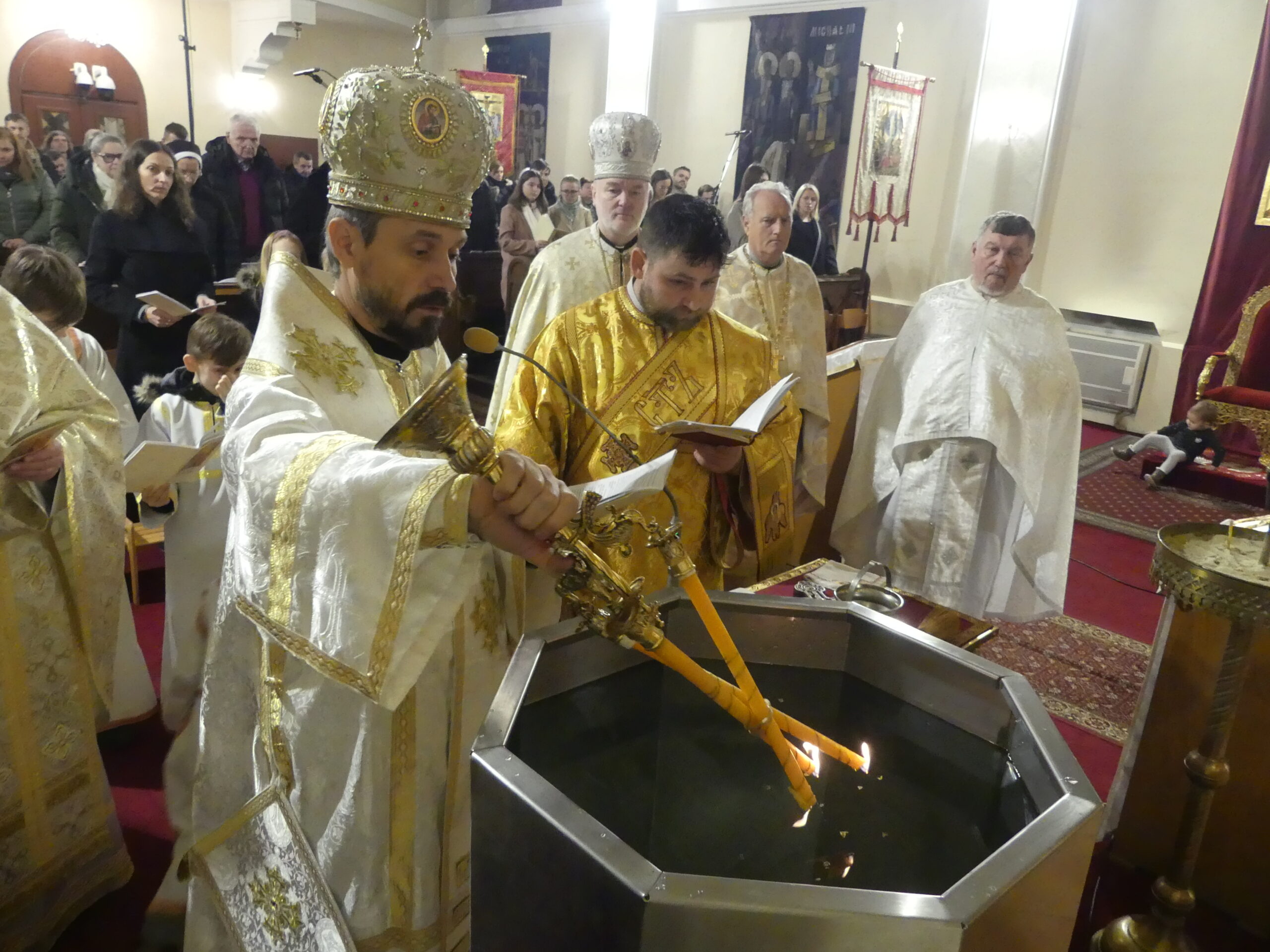 Po prosbách nasledovali modlitby, prednášané vladykom Milanom, v ktorých sa viackrát vzýva Svätý Duch, aby zostúpil, očistil a posvätil vodu a dal jej moc liečiť dušu i telo. Modlitby velebia Svätú Trojicu a prosia Svätého Ducha, aby zostúpil a sám posvätil vodu: „Dnes zjavením nášho Boha stali sa liečivými vody Jordánu… Dnes vody Jordánu zmývajú hriechy ľudstva. Raj sa znovu otvoril a zažiarilo Slnko pravdy … Dnes tvoj príchod, Kriste, rozptýlil temnoty sveta … Dnes anjeli s ľuďmi jasajú. Zem sa na nebo zmenila. Radujú sa sväté zástupy Božieho ľudu… Preto príď aj teraz, láskyplný Kráľ, a Svätým Duchom posväť túto vodu. Udeľ jej silu, aby očisťovala a posväcovala ako rieka Jordán. Nech je prameňom nesmrteľnosti, prostriedkom posvätenia, odpustenia hriechov, uzdravenia v chorobe … aby slúžila všetkým, ktorí z nej budú čerpať a piť z nej na očistenie duše a tela, na uzdravenie v chorobe, na po svätenie domov, i na každú inú dobrú potrebu.“