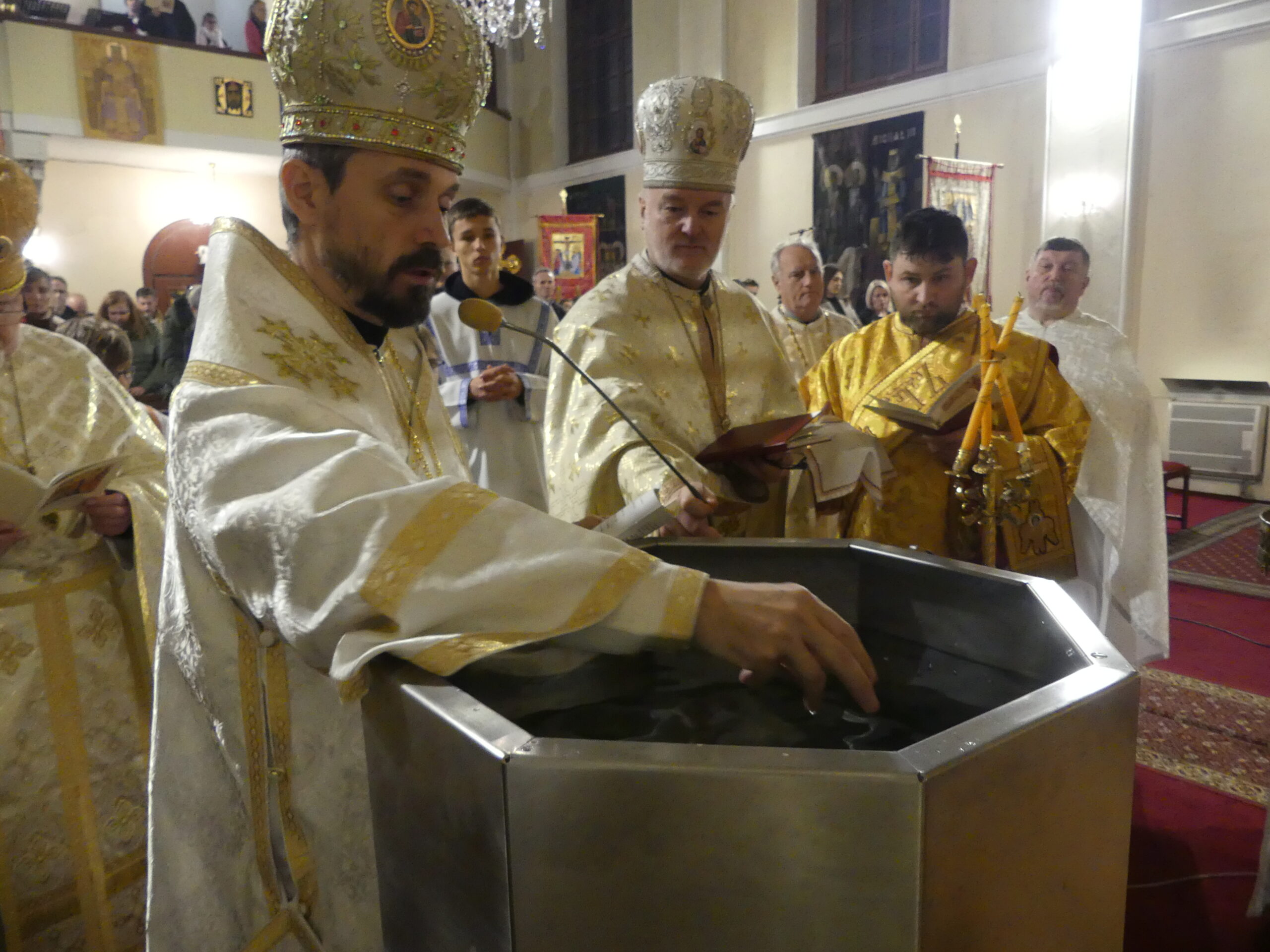 Druhá časť večerného liturgického slávenia patrila obradu Veľkého svätenia vody. Ide o jedinečný obrad, ktorý je unikátom našej byzantskej tradície. Tento obrad zložili viacerí svätci, medzi iným carihradský patriarcha sv. Proklos (5. stor.), ktorý sa tiež považuje za autora modlitby Veľij jesi Hospodi (Veľký si, Pane). Na začiatku obradu sa spievajú stichiry („Hlas Hospodeň na vodách – Hlas Pánov nad vodami“), ktoré zložil sv. Sofrón (6. stor.), jeruzalemský patriarcha.