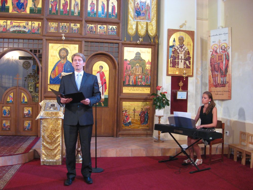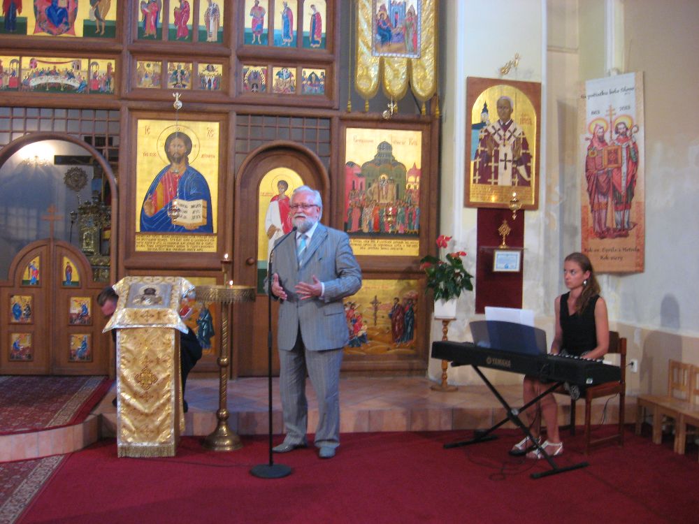 Miroslav Holečko, predseda Spoločnosti svätého Gorazda, projektový manažér NOC pre kresťanské a národné tradície, vo svojom príhovore poukázal na osobnosť sv. Gorazda a na rôzne aspekty diela solúnskych bratov na poli cirkevnom, kultúrnom, či osvetovom. Ako zdôraznil, veľký význam mal rozvoj vzdelania školstva, a to nielen pre budúce duchovenstvo, ale i civilný stav.