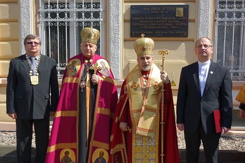 Po sv. liturgii odhalili tabuľu doc. Michal Hospodár, predseda Spolku sv. Cyril a Metoda a Ing. Juraj Koperdák, spolupracovník v košickom odbore Matice slovenskej. Následne tabuľu posvätili prítomní gréckokatolícki biskupi.