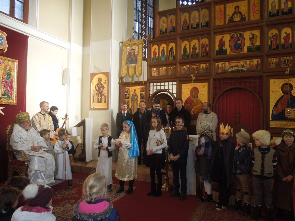 Kristus prichádza na tento svet, aby toto bezbranné dieťa bolo odpoveďou na naše utrpenie, ťažkosti, problémy. Židia hovoria, že bez detí by paschálna večera nemala význam, lebo tam rodičia rozprávajú svojim deťom o tom, čo Pán urobil v ich dejinách a v ich živote. Naše deti zasa, ktoré rodičia privádzajú na bohoslužby, od malička tam nasávajú tú atmosféru. Nech na nás vidia rozžiarené tváre, aby keď uvidia tú radosť v nás, mohli si povedať, tam v cerkvi je to nádherné, je to super… V závere všetkým zaželal, aby naše Vianoce boli uprostred s Kristom, lebo On dáva radosť, ktorú nám nik nemôže vziať.